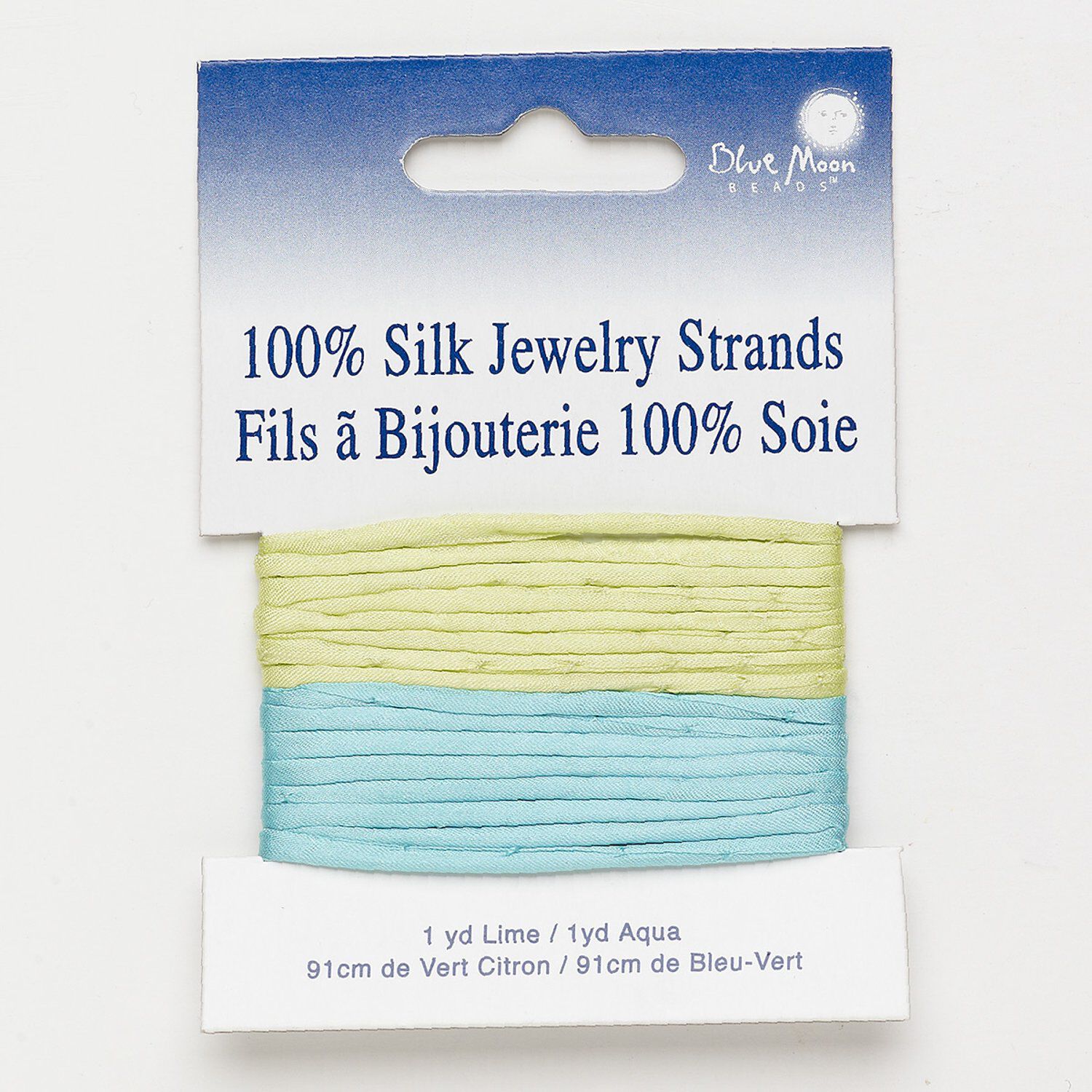 Cord, silk, light green and turquoise blue, 3mm wide. Sold per pkg of (2) 1-yard sections.