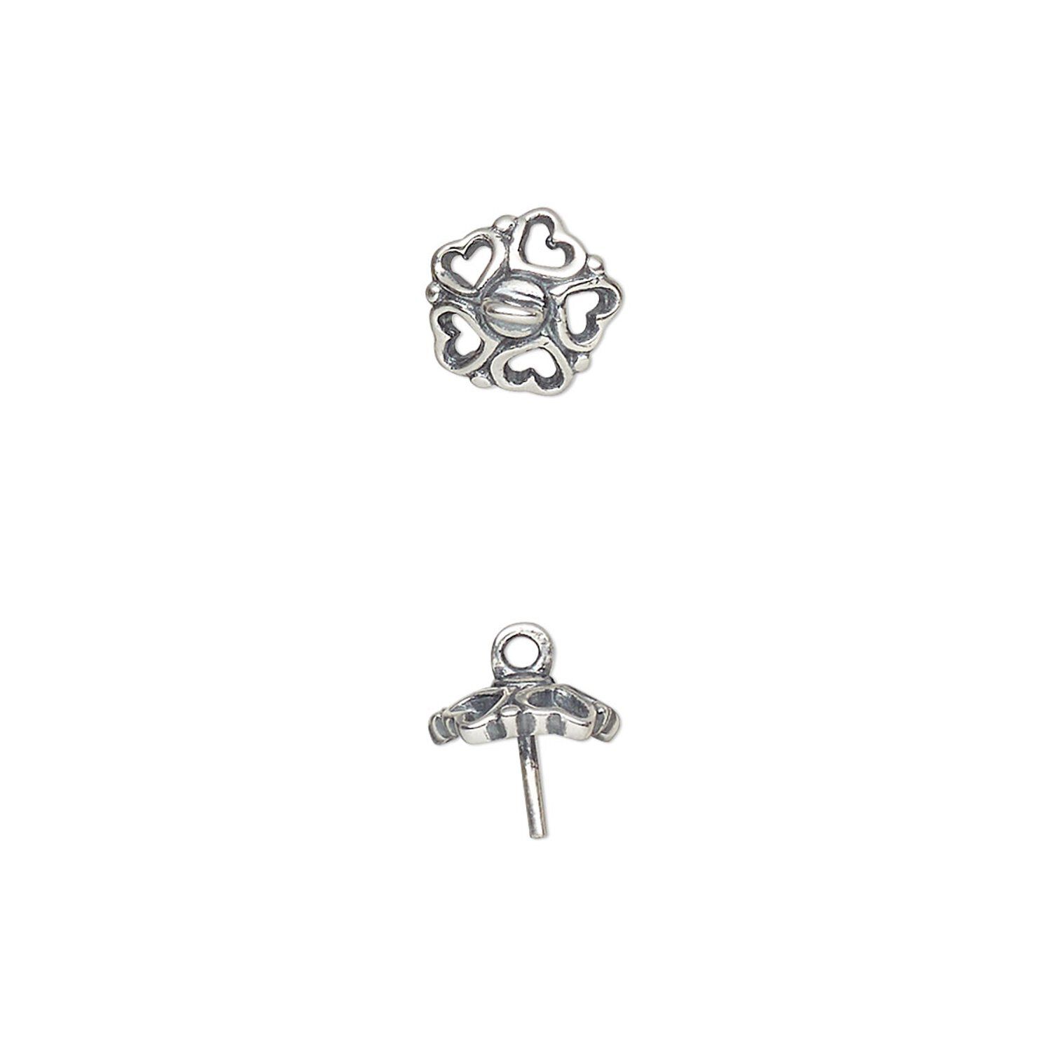 Cup, antiqued sterling silver, 8x8mm pentagon with hearts and 4.5x0.7mm peg. Sold individually.