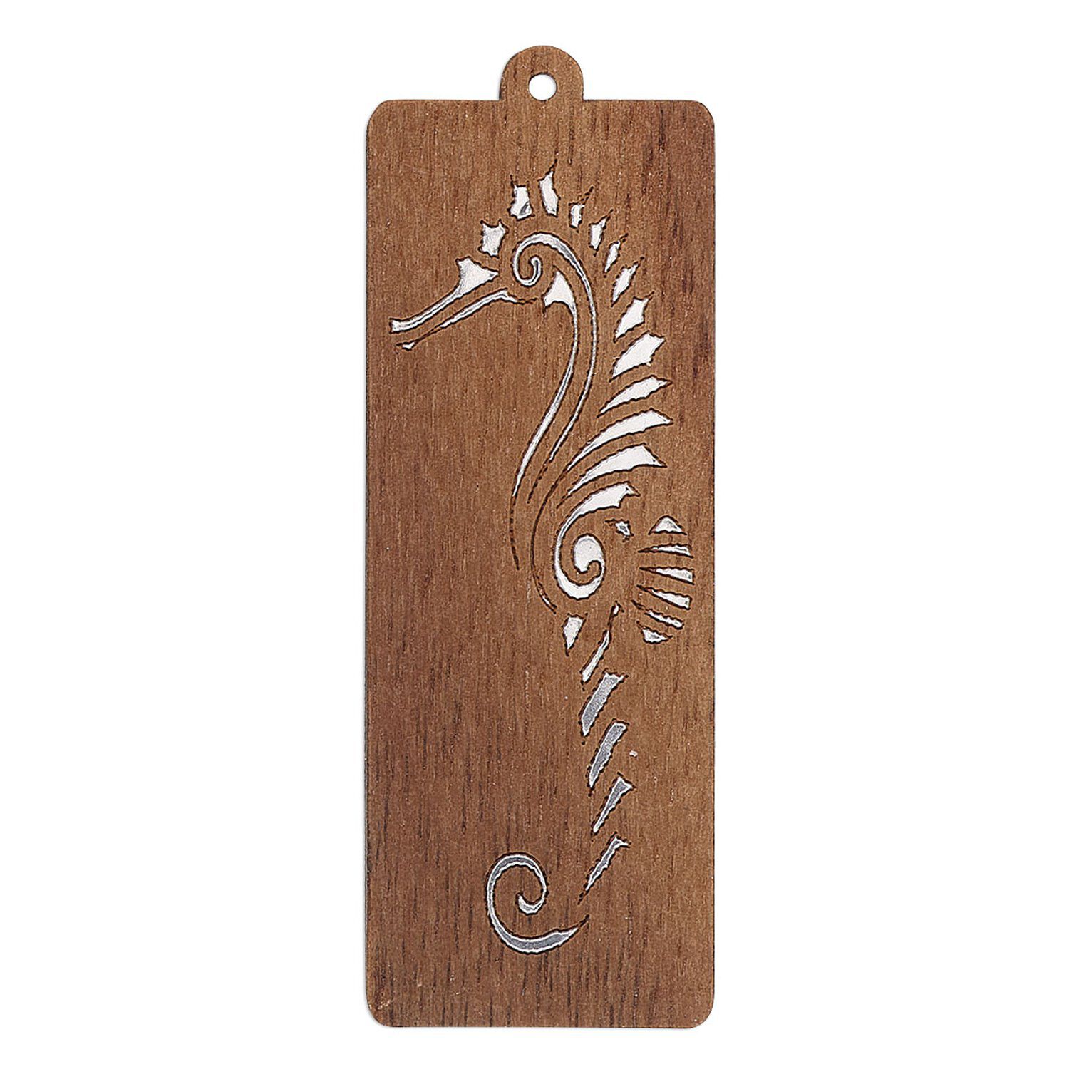 Focal, black walnut (natural) and aluminum foil, 43x16mm single-sided laser-cut rectangle with seahorse. Sold individually.