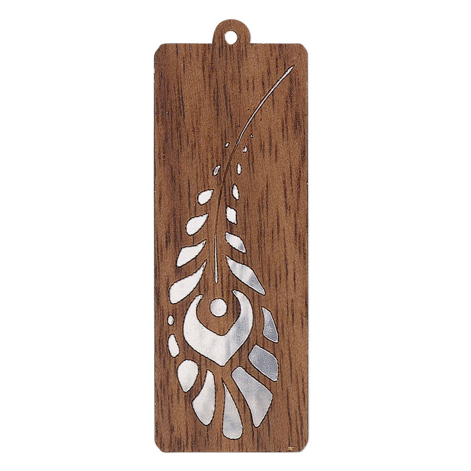 Focal, black walnut (natural) and aluminum foil, 43x16mm single-sided laser-cut rectangle with feather. Sold individually.