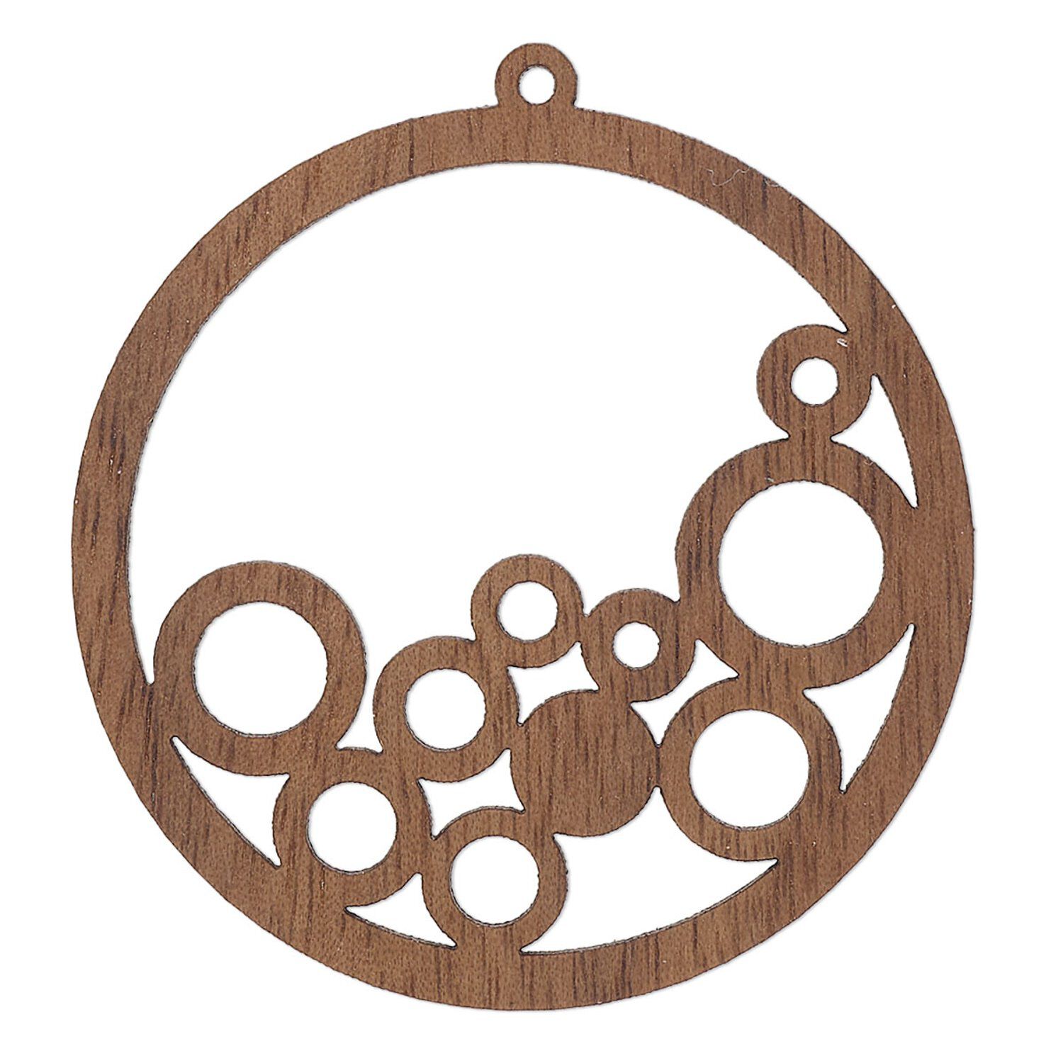 Focal, black walnut (natural), 38mm single-sided laser-cut round with cutout circles design. Sold individually.