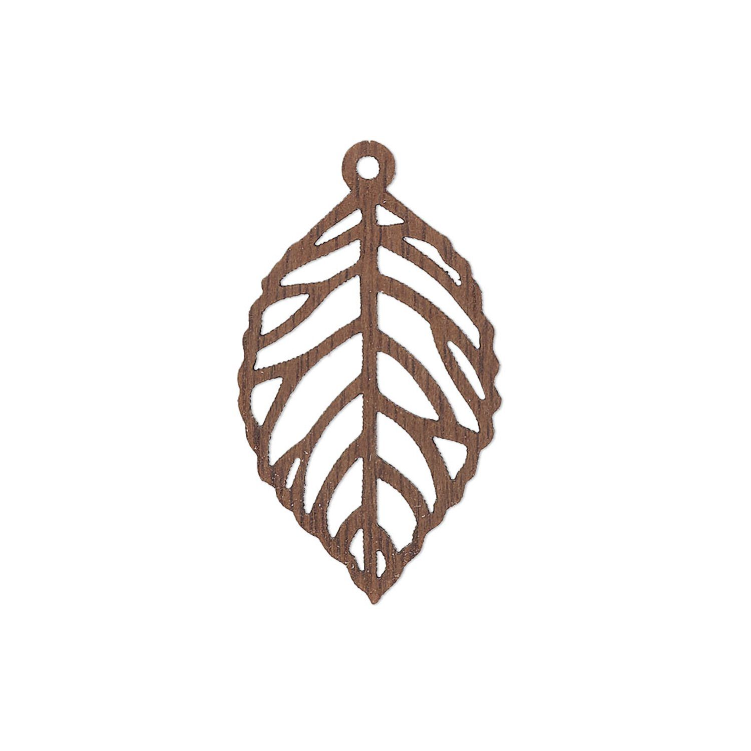 Drop, black walnut (natural), 25x15.5mm single-sided laser-cut leaf with cutout design. Sold individually.