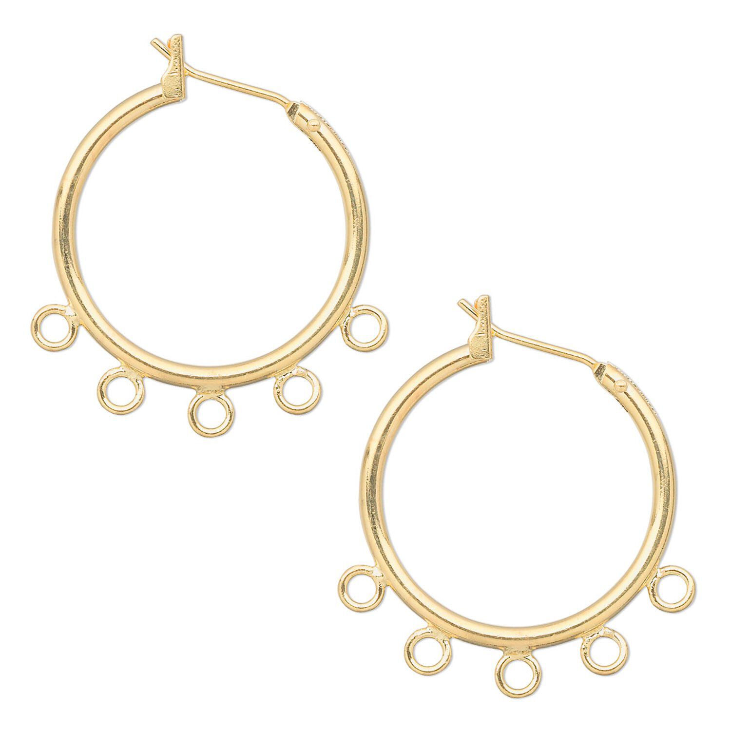Earring hoop 1pkg2 gold-plated, 23mm round / latch-back / closed loop, brass 1 pair