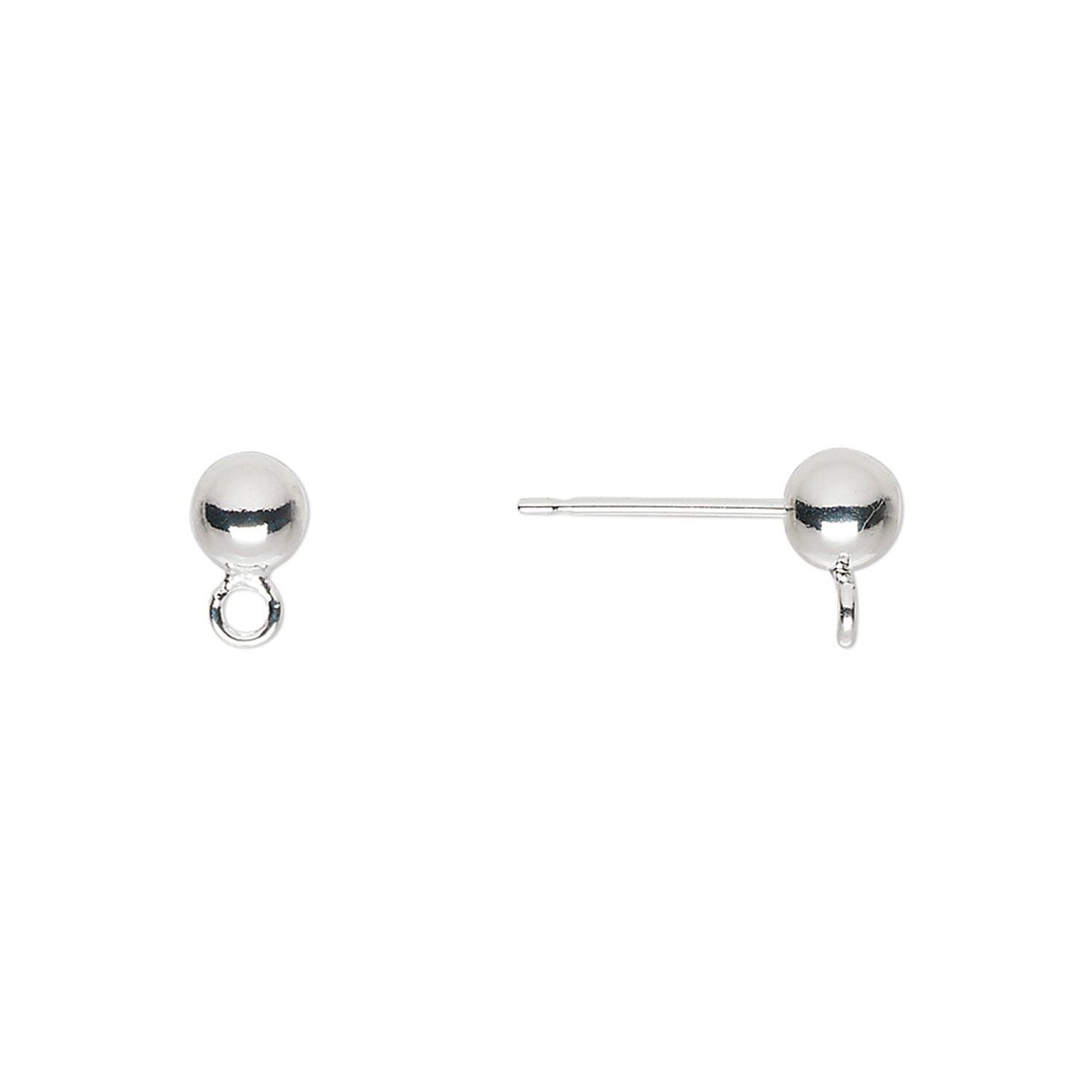 Earstud, silver-plated brass and stainless steel, 5mm ball with closed loop. Sold per pkg of 5 pairs.