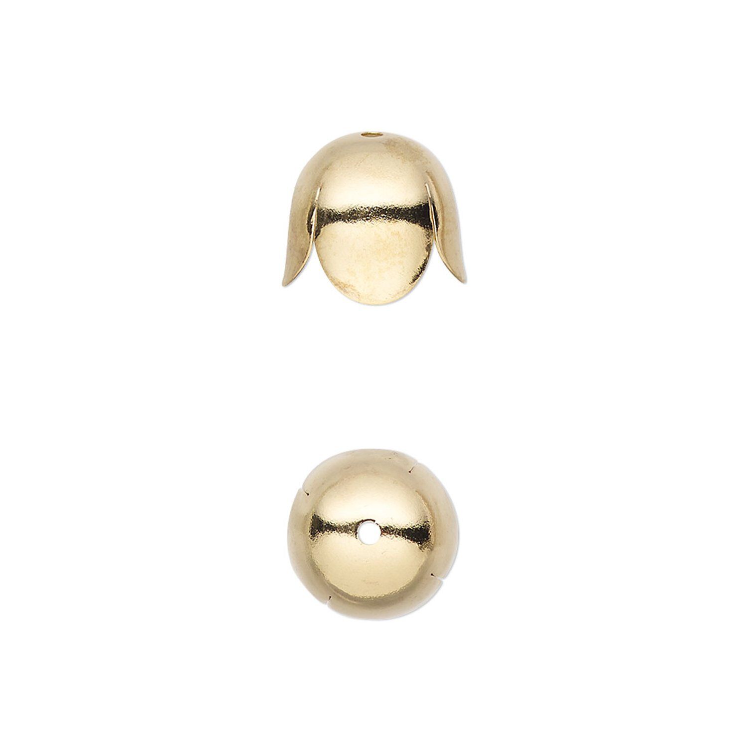 Cord end, gold-plated brass, 10x9mm with 8mm inside diameter. Sold per pkg of 10.