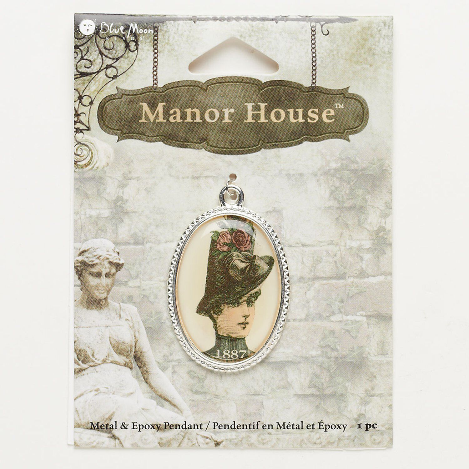 Focal, epoxy and silver-finished "pewter" (zinc-based alloy), 37x24mm oval with lady. Sold individually.