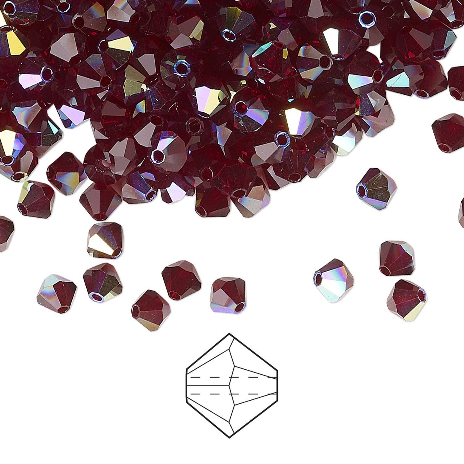 Bead 144pk garnet AB, Preciosa Czech crystal 4mm bicone