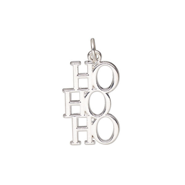 Charm, silver-finished "pewter" (zinc-based alloy), 20x13.5mm HoHoHo. Sold per pkg of 4.