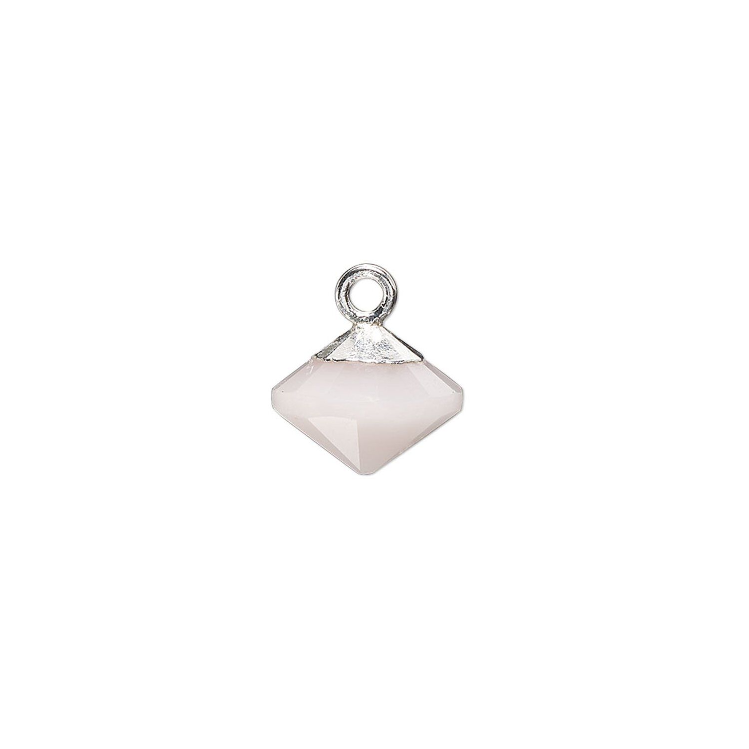 Pink opal in a faceted bicone shape is accented with silver plating and features a sterling silver loop for easily adding this sweet gemstone to jewelry designs. These beautiful, hand-cut gemstone drops will add a special handcrafted touch to your jewelry.