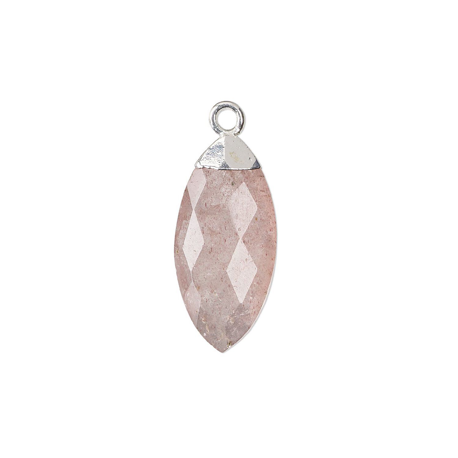 Strawberry quartz in a faceted marquise shape is accented with silver plating and features a sterling silver loop for easily adding this delicious gemstone to jewelry designs. These beautiful, hand-cut gemstone drops will add a special handcrafted touch to your jewelry.