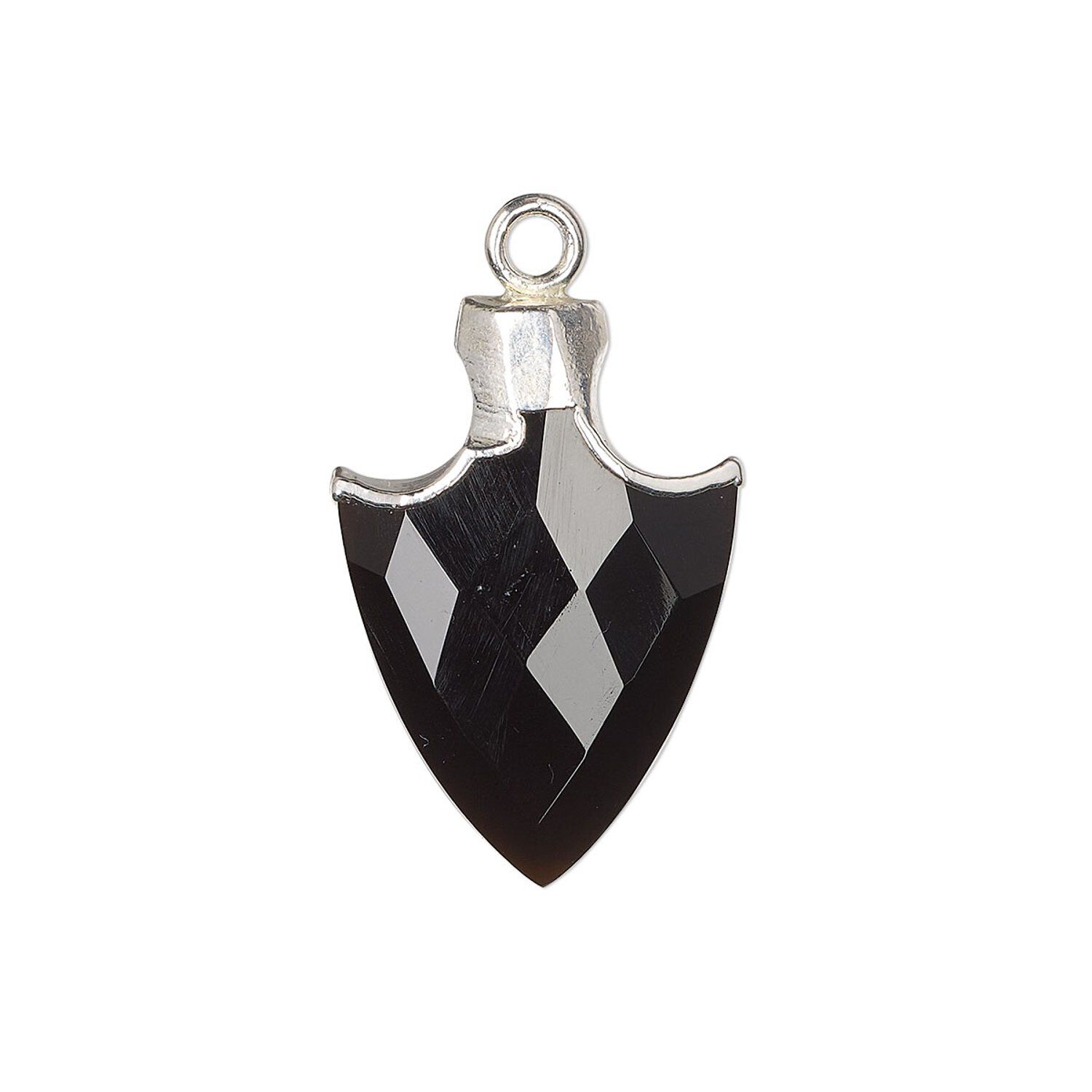 Black onyx in a faceted arrowhead shape is double-sided, with silver plating along the edges, and features a sterling silver loop for easily adding this elegant gemstone to jewelry designs. These beautiful, hand-cut gemstone drops will add a special handcrafted touch to your jewelry.
