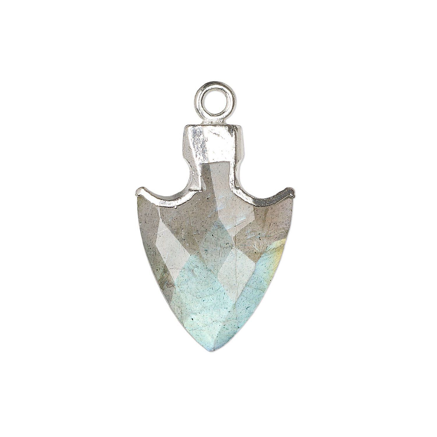Labradorite in a faceted arrowhead shape is double-sided, with silver plating along the edges, and features a sterling silver loop for easily adding this intriguing gemstone to jewelry designs. These beautiful, hand-cut gemstone drops will add a special handcrafted touch to your jewelry.