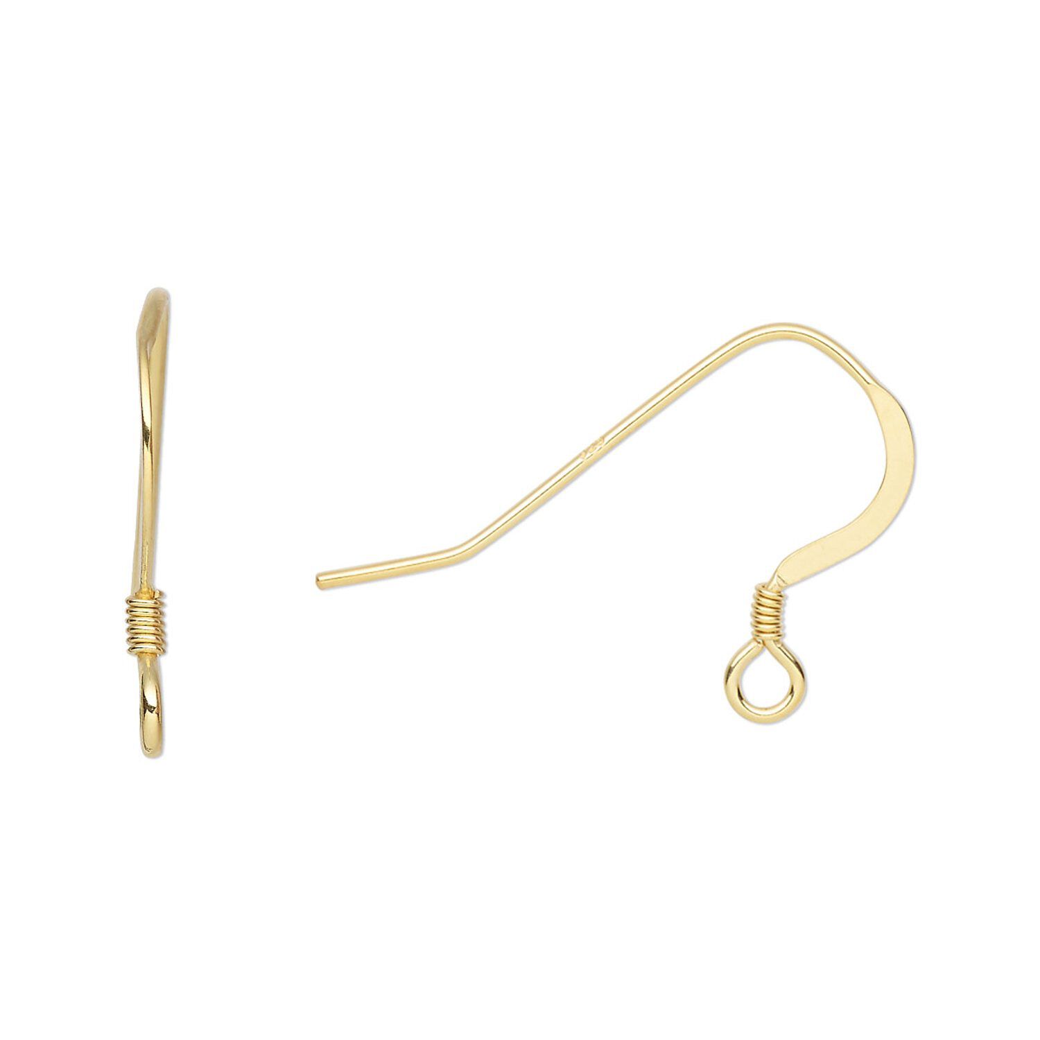 Ear wire fishhook 1pkg4 sterling silver, 15mm flat / 2mm coil / open loop, 21 gauge "vermeil" 2 pair