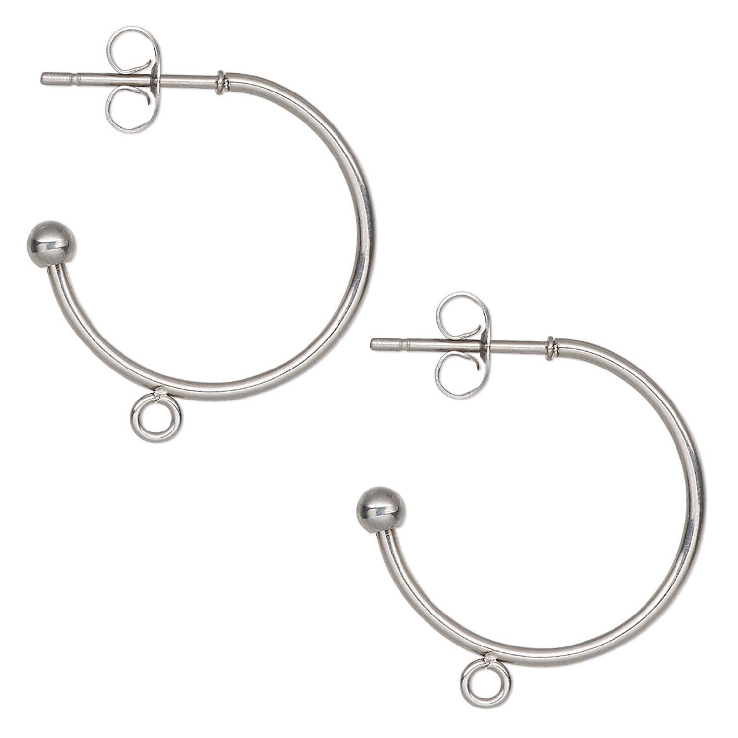 Just add your favorite ornament to the closed loop and you have a finished set of earrings. The stylish 3/4 hoop design features a ball at the end for a nice finishing touch. The sturdy, tarnish-resistant stainless steel composition ensures that these hoops will last a long time and stay looking great through the years. Earnuts included.