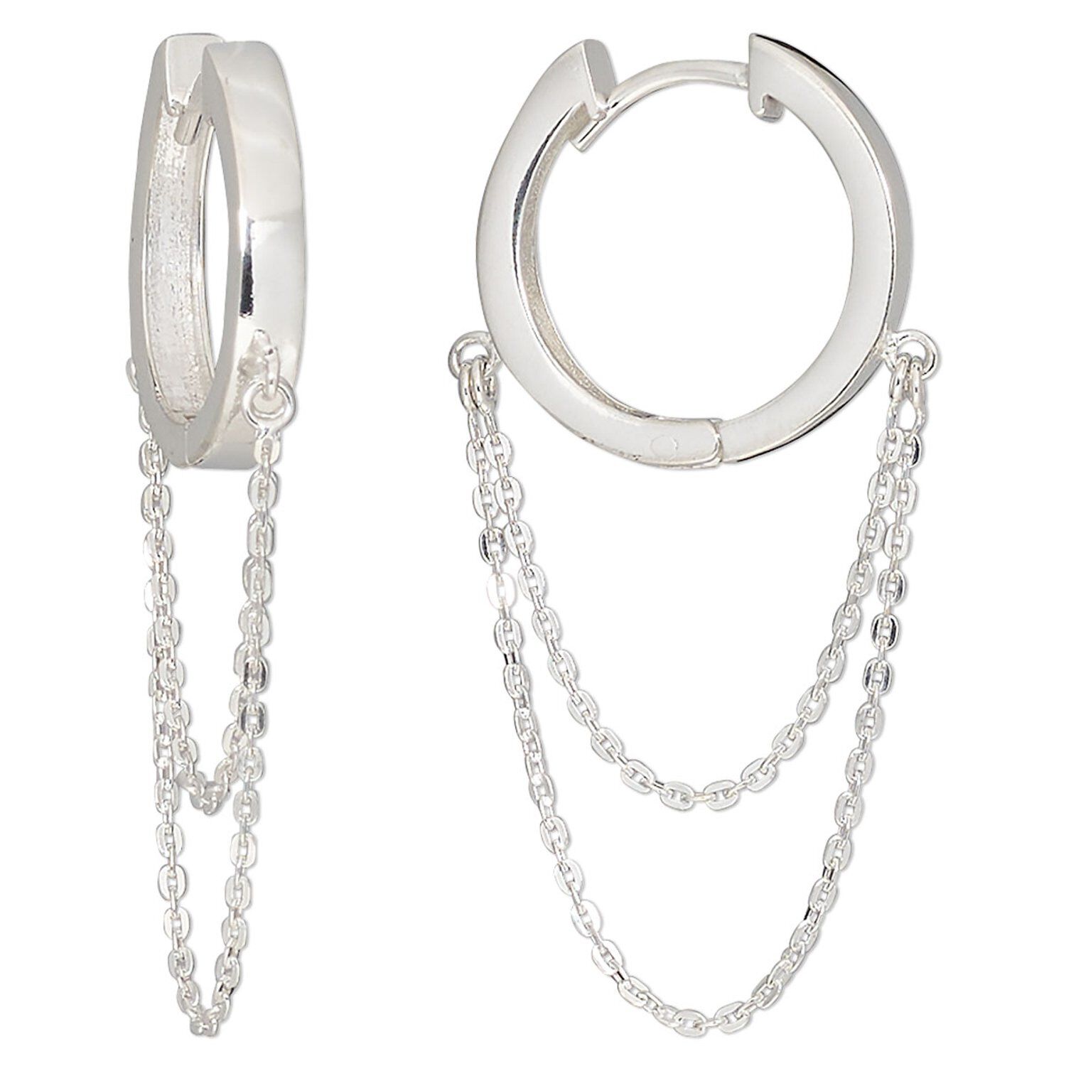 Enjoy some subtle bling. These hinged hoop earrings are draped with a double swag of chain for fun movement and a bit of sparkle. Earrings have an anti-tarnish coating.