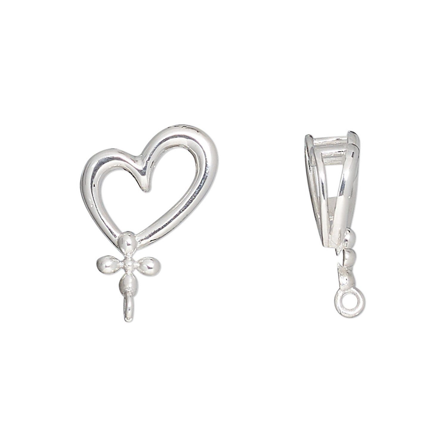 Slide, sterling silver, 17x13.5mm heart with closed loop. Sold individually.