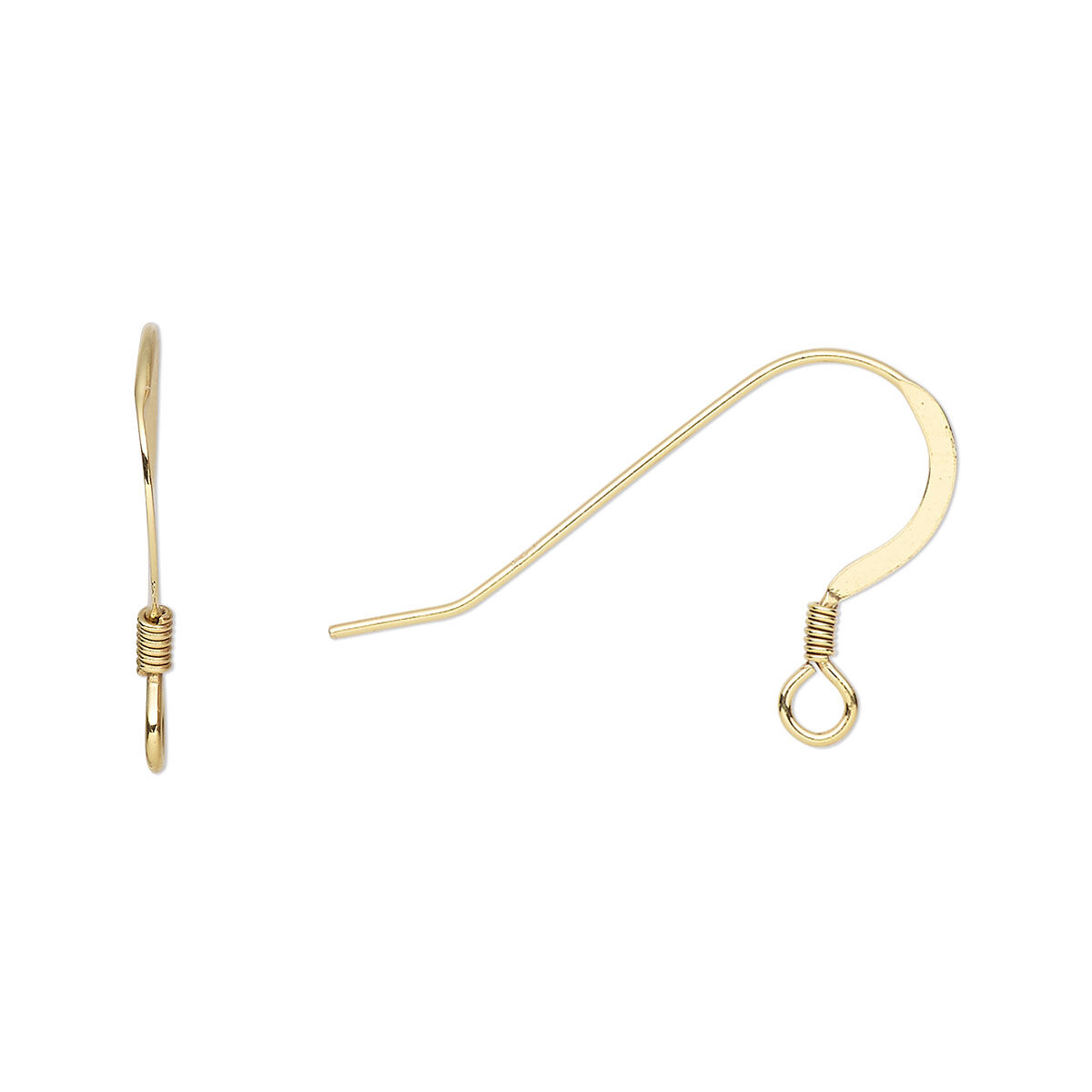 Ear wire fishhook 1pkg10 sterling silver, 15mm flat / 2mm coil / open loop, 22 gauge "vermeil" 5 pair