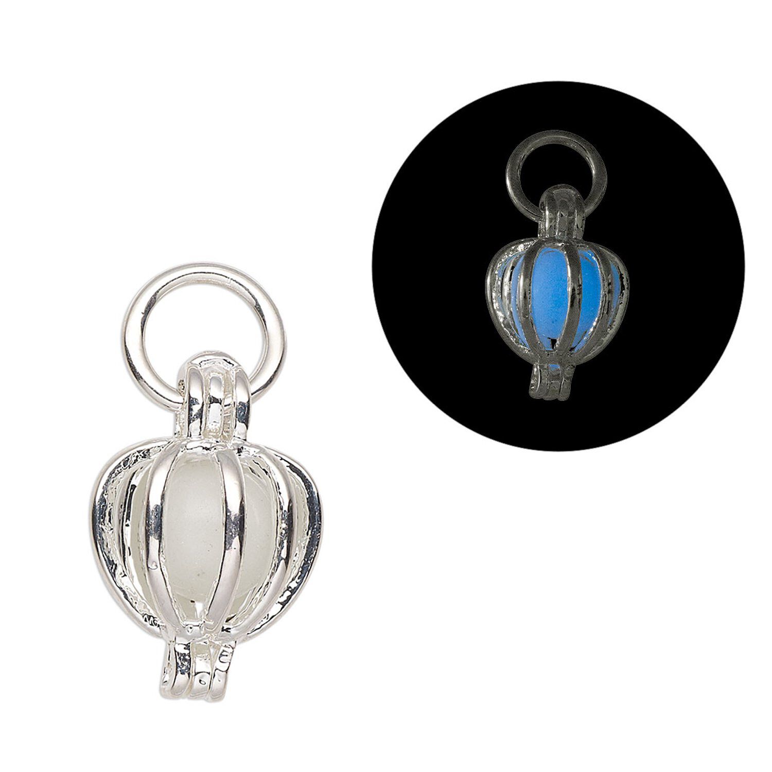 Give your jewelry box a literal glow-up. Perfect for Halloween, Christmas, winter holiday or fantasy-themed jewelry, these zinc-based "pewter" components hold photoluminescent orbs that glow blue in the dark. Let them sit in the sun or strong light and enjoy the light when all other lights go out. The silver finish gives them a beautiful shine, and filigree details add to the magic. Pair them with other glow-in-the-dark components such as druk beads and Oh! Rings™ for fabulous glowing jewelry. The glowing orbs can be interchanged with other beads, gemstones and more to customize your look.