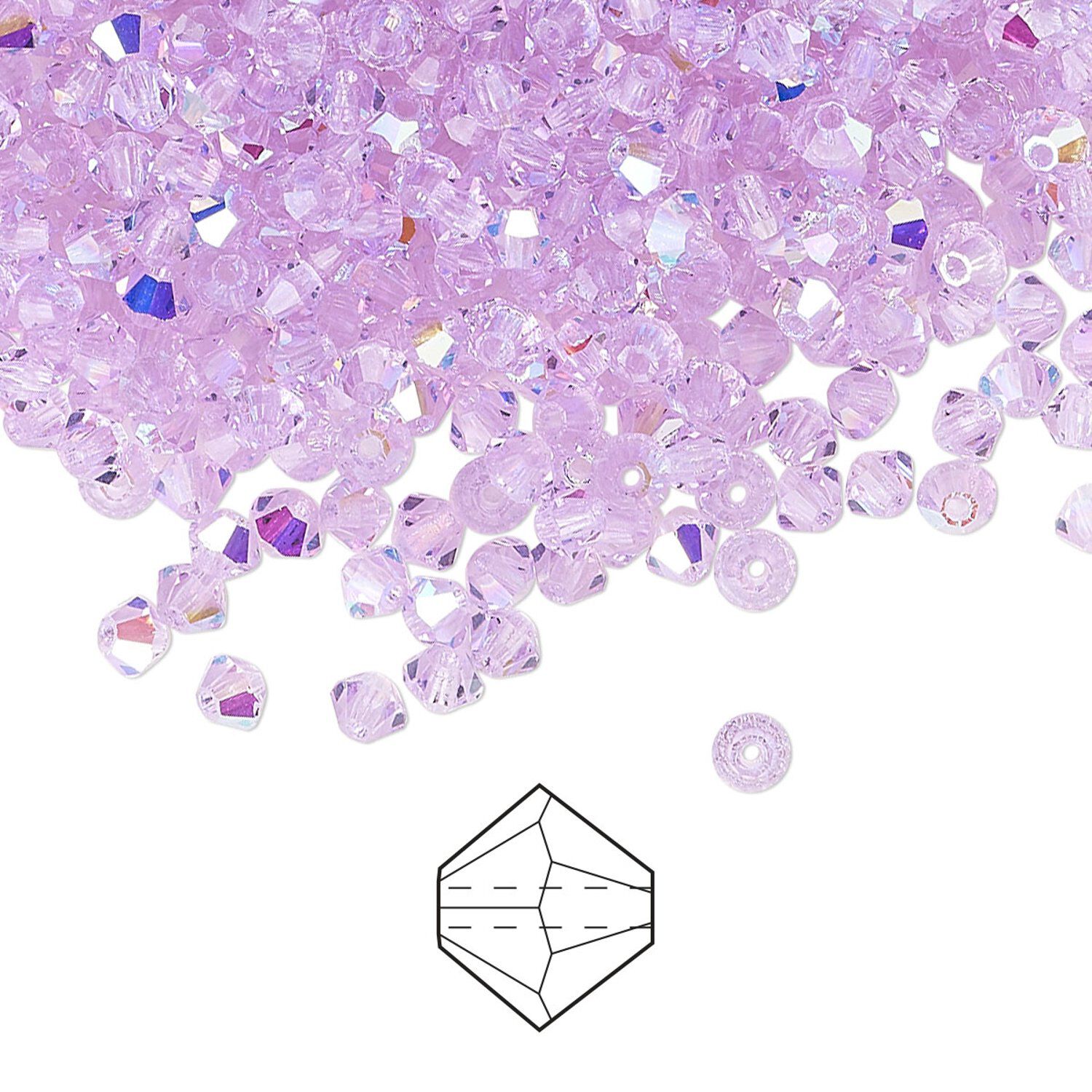 Bead 144pk violet AB, Preciosa Czech crystal 3mm bicone