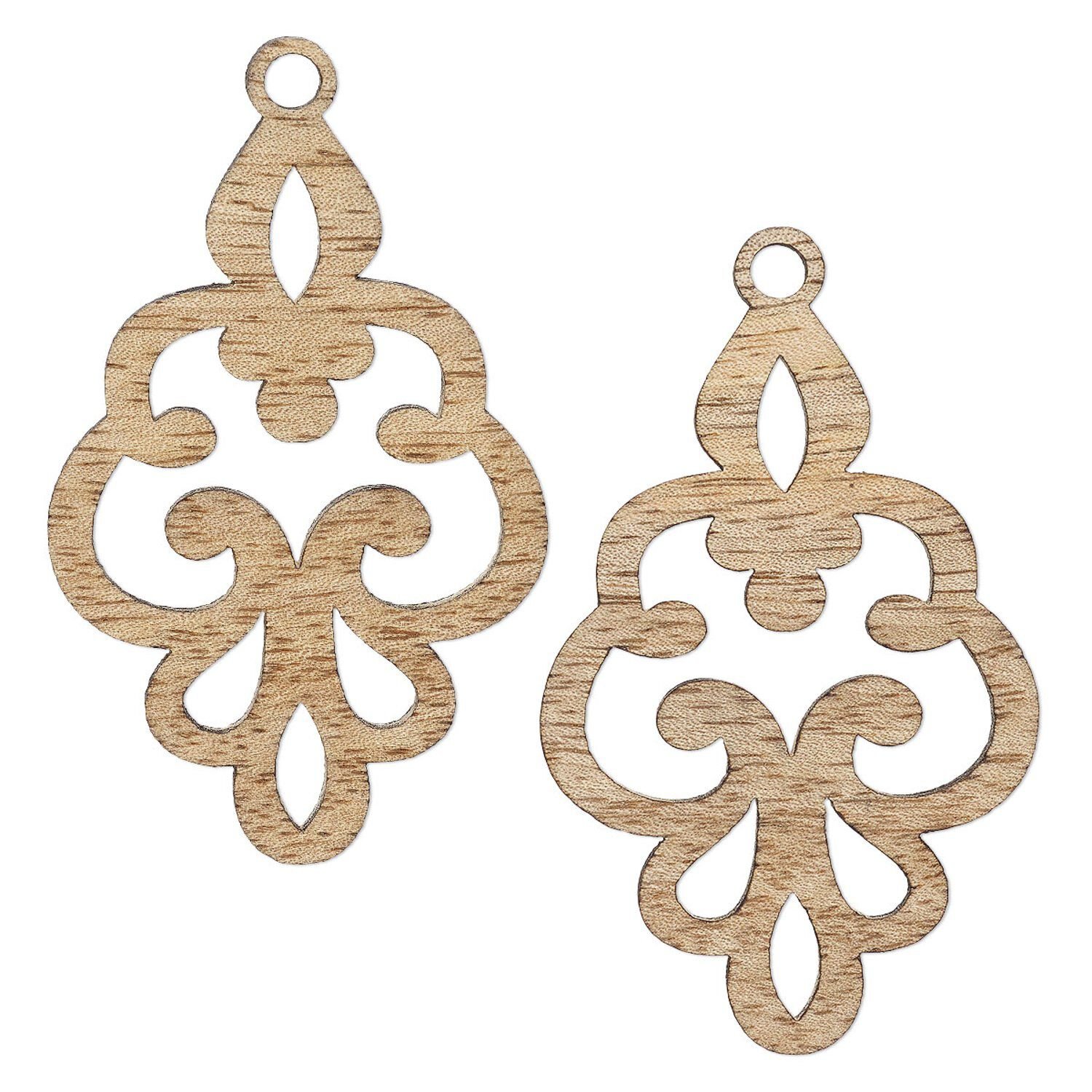 Lightweight mango wood focals feature intricately laser-cut patterns with beautiful high contrast. These focals are 5mm thick and lightly stained and lacquered to highlight and preserve their details. They can be painted, embellished or used as-is in a variety of creative uses. Ideal for earrings and pendants that make a statement. Feeling bold? Create complex designs by layering multiple pieces.