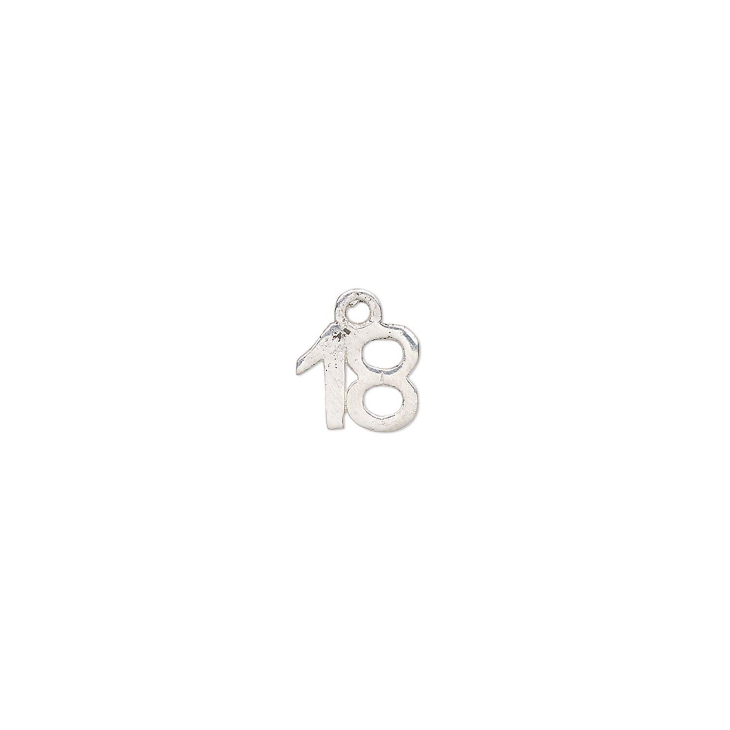 Charm, sterling silver, 6.5x6mm number 18. Sold per pkg of 2.