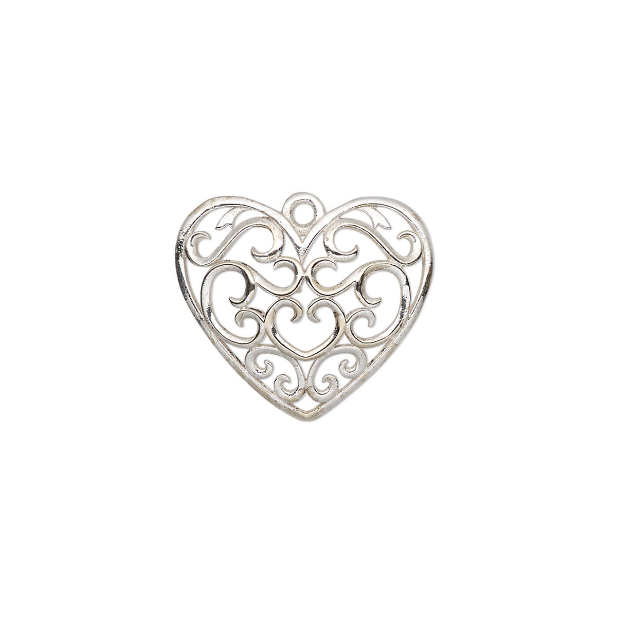 Lots of curlicues give this heart charm an open, airy feel. The charm is domed for extra dimension and has many creative possibilities. Comes with an anti-tarnish coating to keep your jewelry looking great.