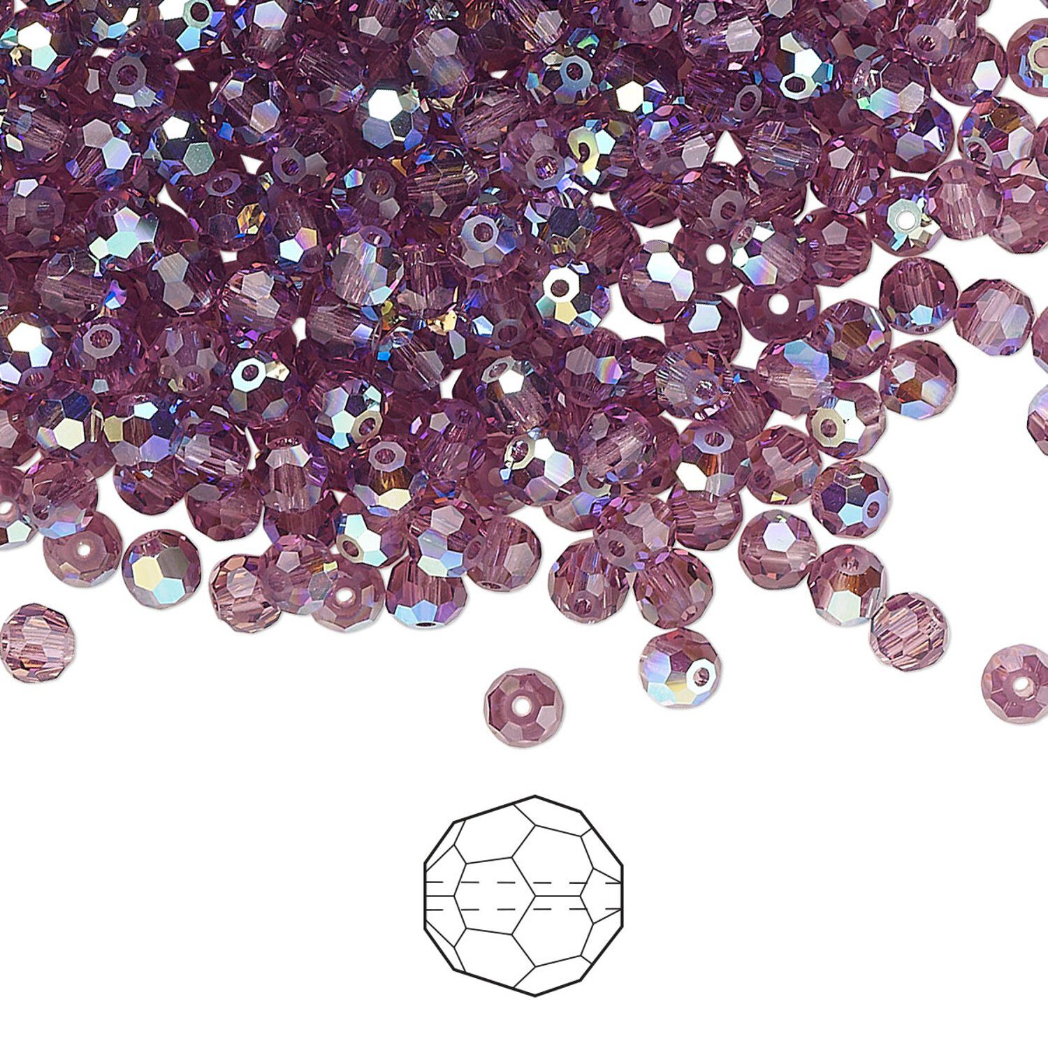 Bead 24pk amethyst AB, Preciosa Czech crystal 3mm round