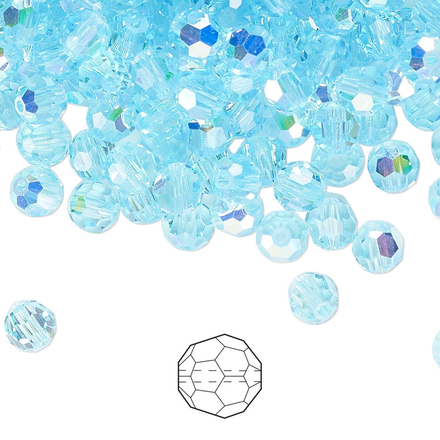 Bead 576pk aqua bohemica AB, Preciosa Czech crystal 5mm round