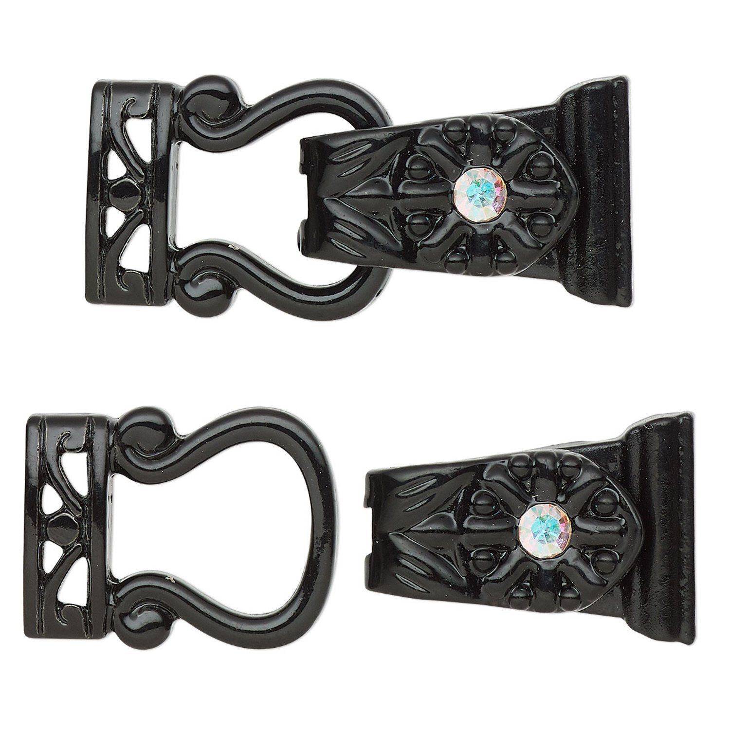 Elaborately detailed fold-over clasp has an attractive black finish and glass rhinestone accents. Standard magnetic strength. Best for use with light to medium-weight designs.