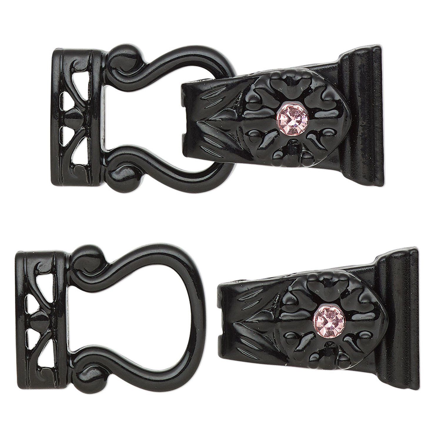 Elaborately detailed fold-over clasp has an attractive black finish and glass rhinestone accents. Standard magnetic strength. Best for use with light to medium-weight designs.