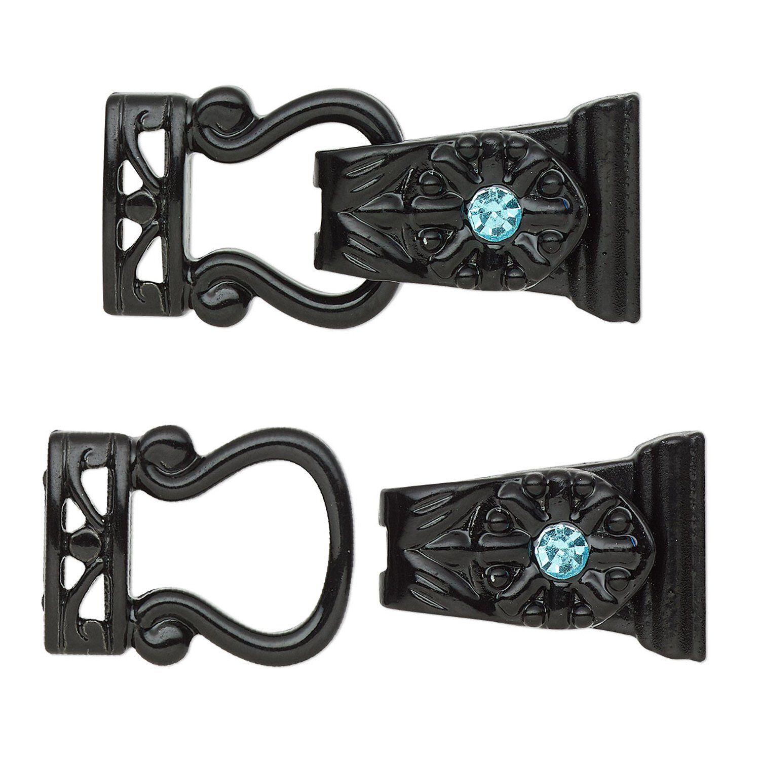 Elaborately detailed fold-over clasp has an attractive black finish and glass rhinestone accents. Standard magnetic strength. Best for use with light to medium-weight designs.