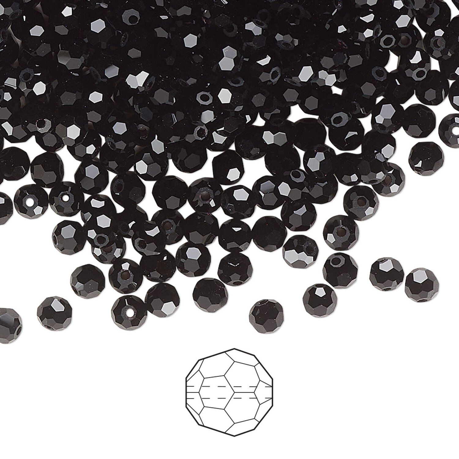 Bead 720pk jet, Preciosa Czech crystal 3mm round