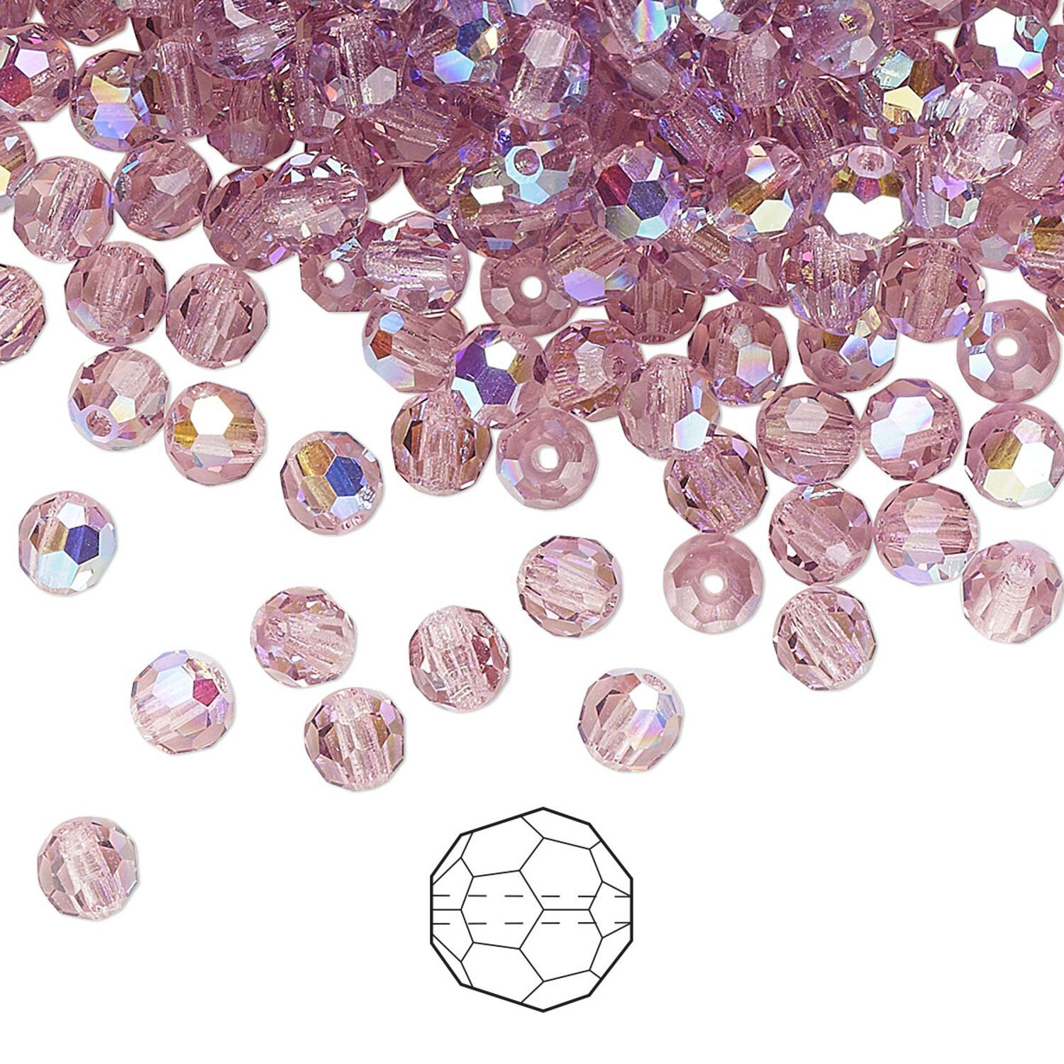 Bead 144pk light amethyst AB, Preciosa Czech crystal 4mm round