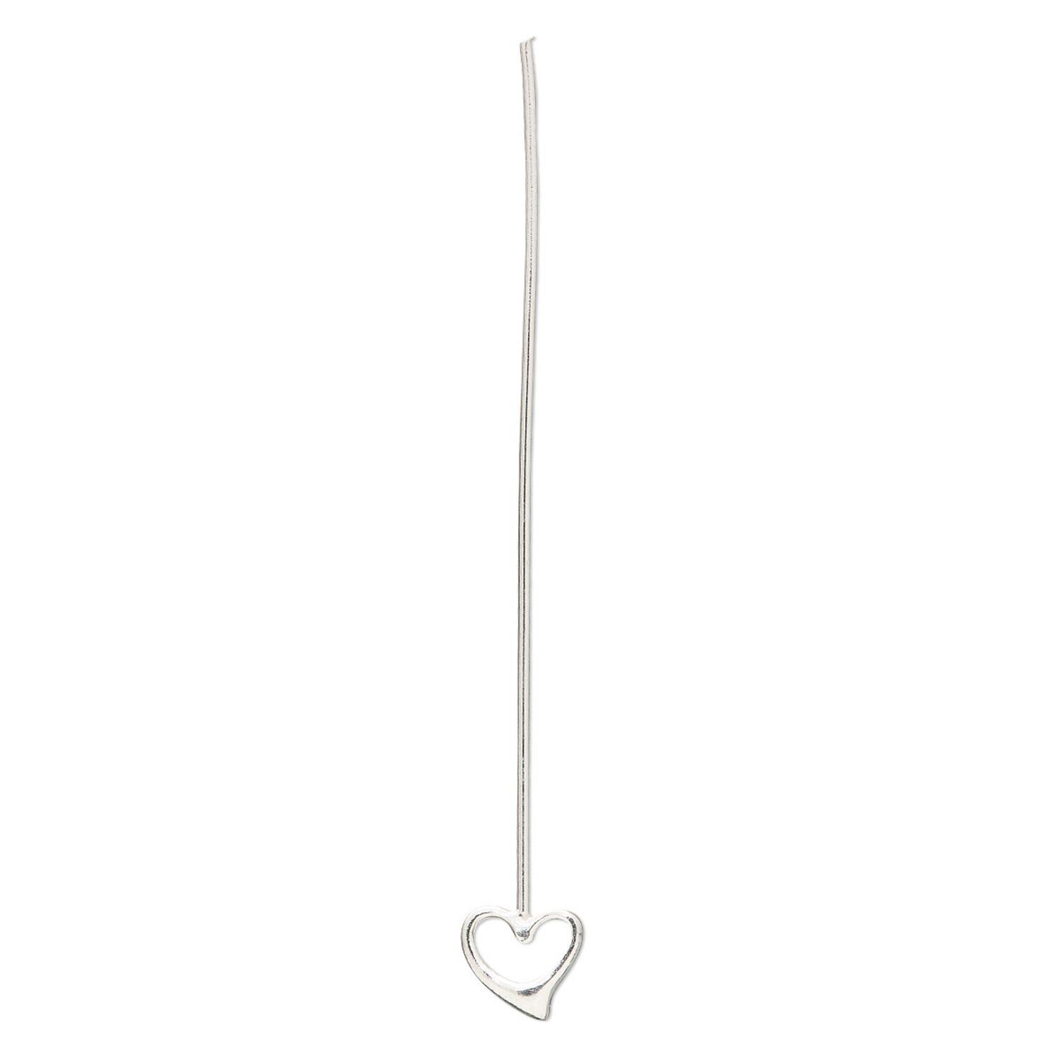 Head pin, sterling silver, 2-1/4 inches with 8mm open heart, 20 gauge. Sold per pkg of 2.