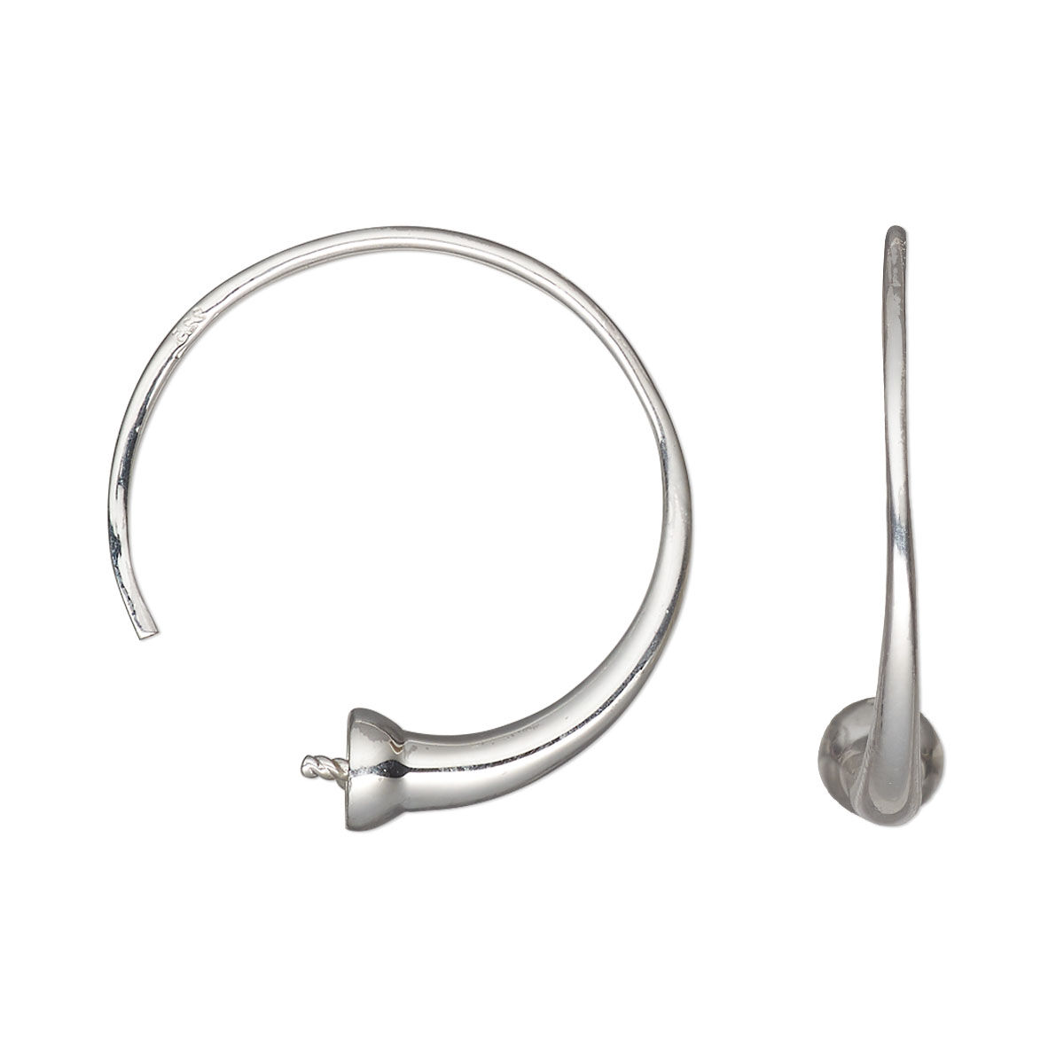 Hoop, sterling silver, 25mm with cup and peg, fits 6-8mm half-drilled bead, 18 gauge. Sold per pair.