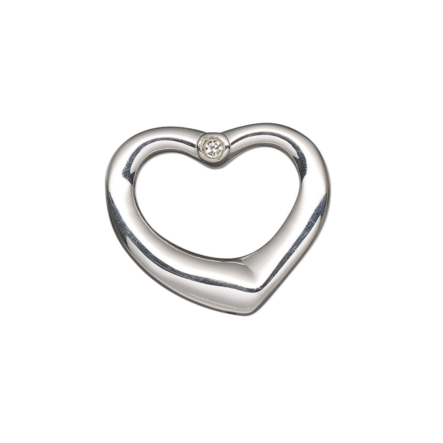 Component, sterling silver and cubic zirconia, clear, 22mmx20mm single-sided open heart. Sold individually.