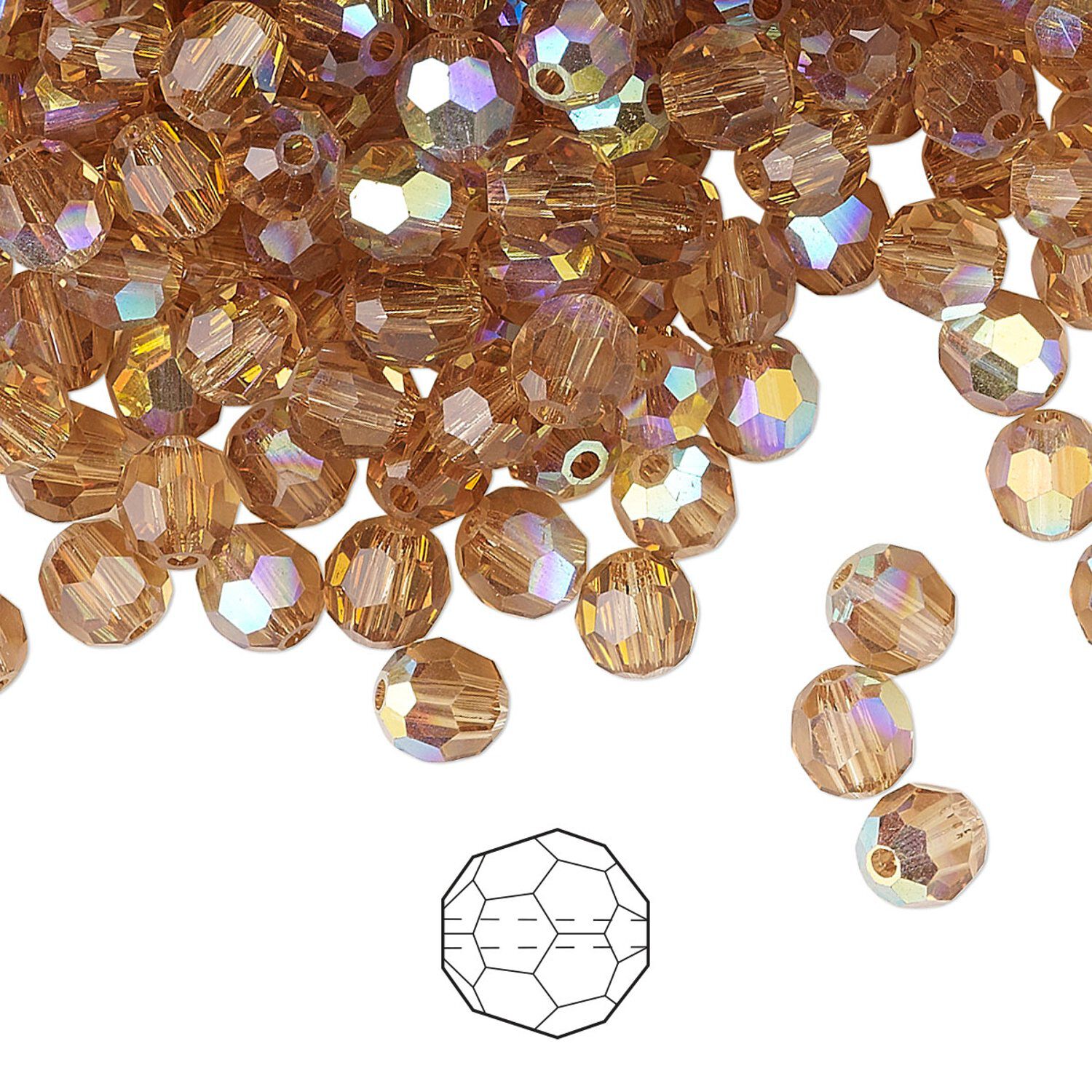 Bead 144pk light Colorado topaz AB, Preciosa Czech crystal 5mm round