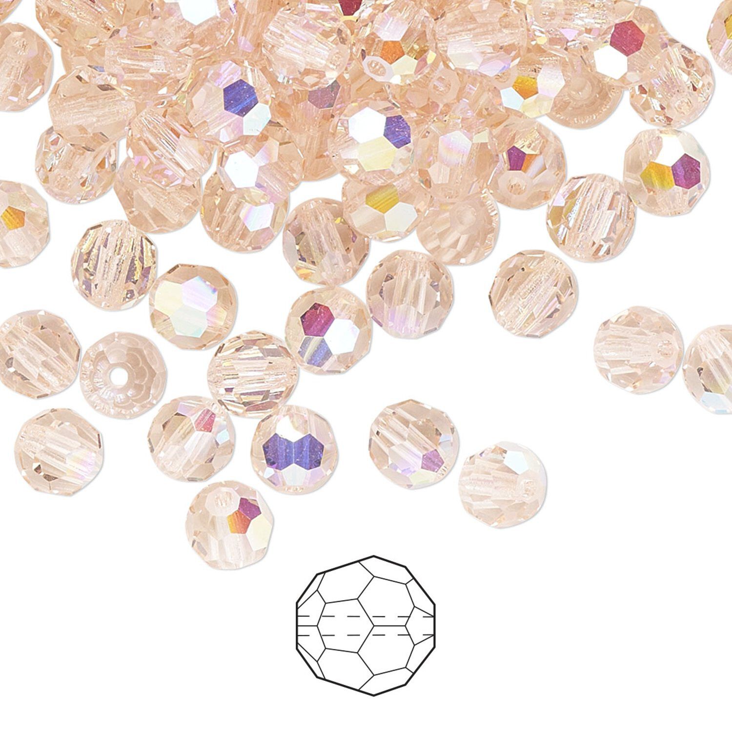 Bead 24pk light rose AB, Preciosa Czech crystal 5mm round