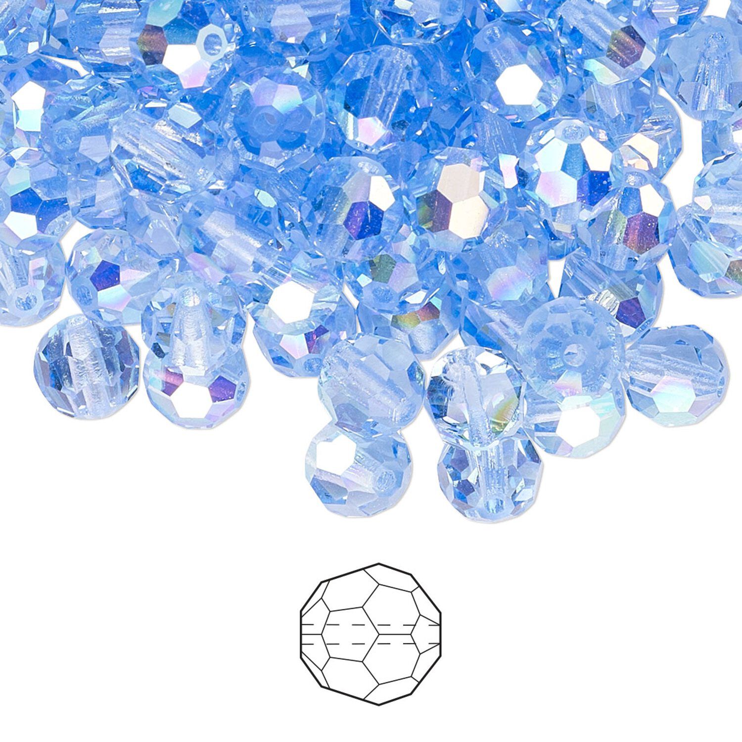 Bead 144pk light sapphire AB, Preciosa Czech crystal 6mm round
