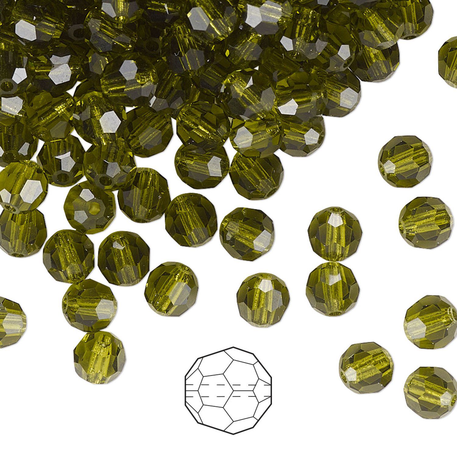 Bead 144pk olivine, Preciosa Czech crystal 5mm round