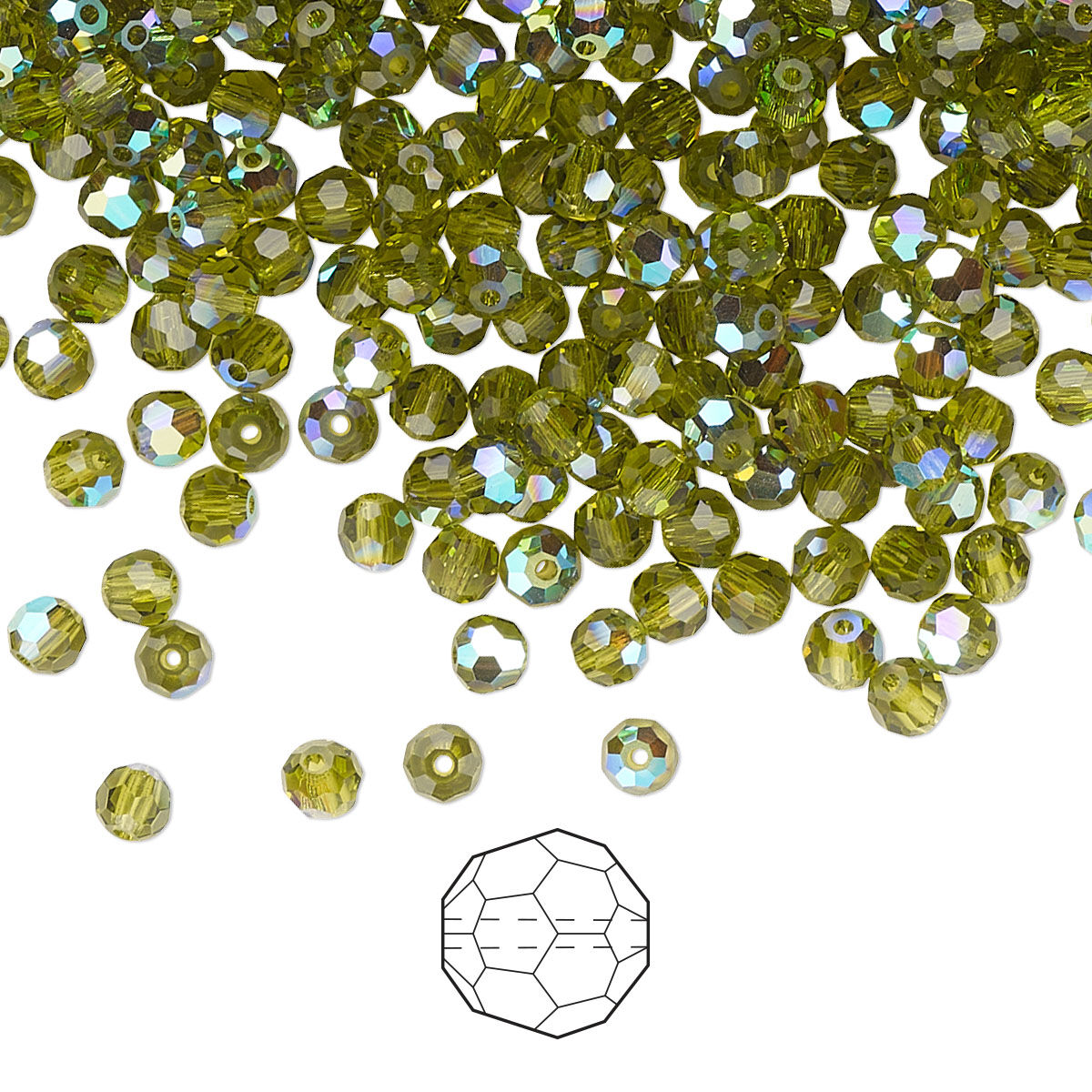 Bead 144pk olivine AB, Preciosa Czech crystal 3mm round