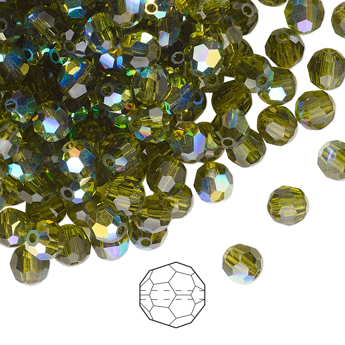 Bead 144pk olivine AB, Preciosa Czech crystal 5mm round