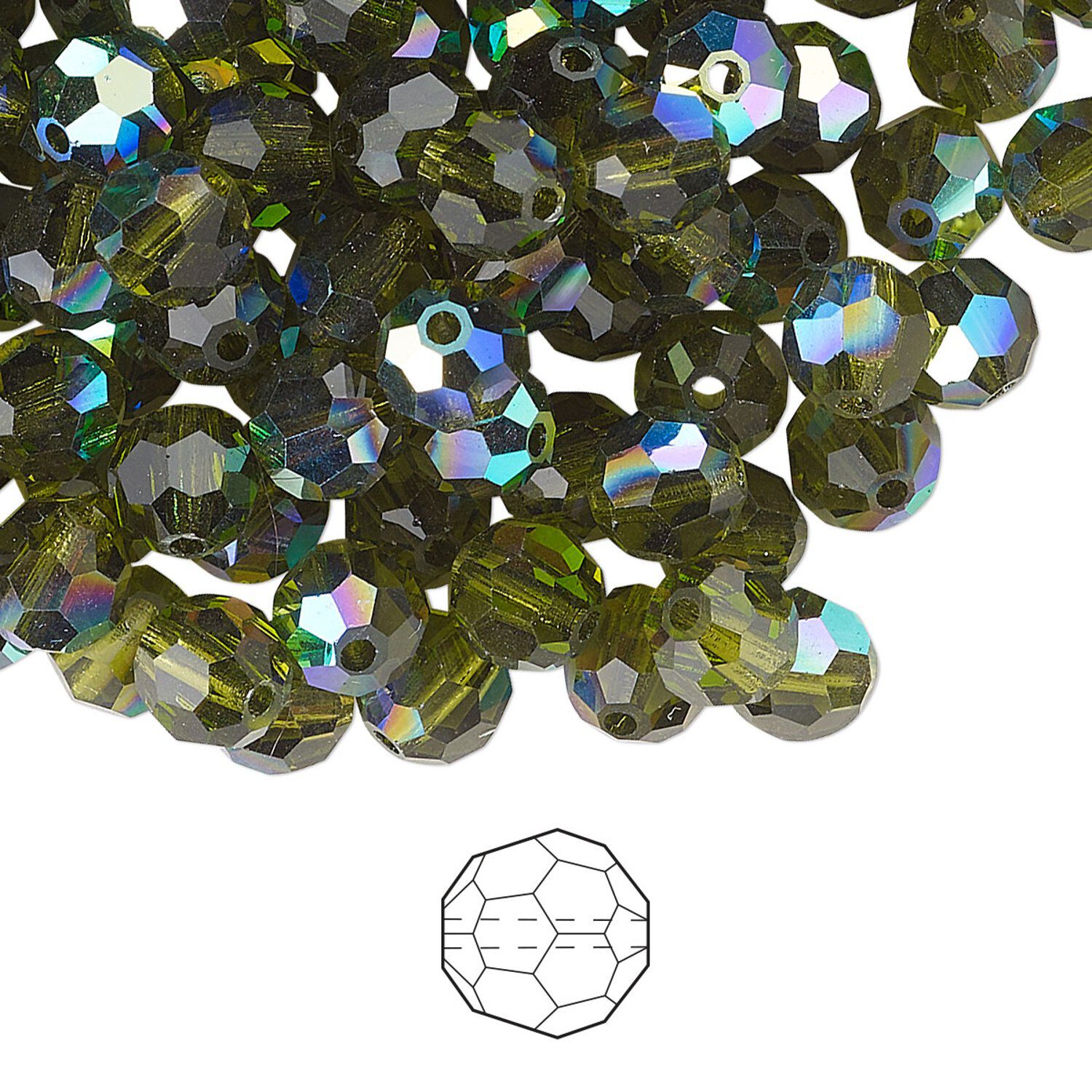 Bead 144pk olivine AB, Preciosa Czech crystal 6mm round