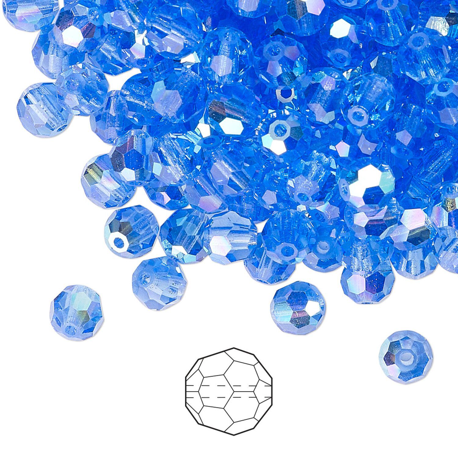 Bead 576pk sapphire AB, Preciosa Czech crystal 5mm round
