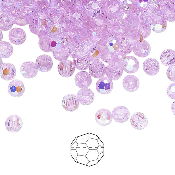 Bead 24pk violet AB, Preciosa Czech crystal 4mm round
