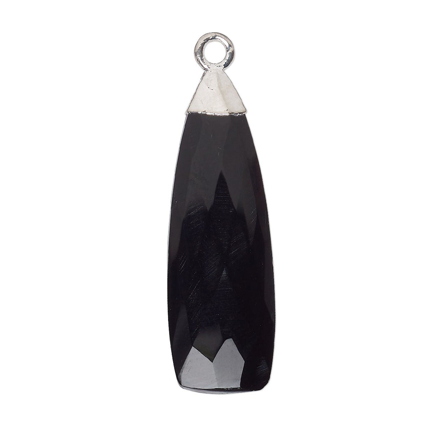 Black onyx / sterling silver 1pkg1, electroplated hand-cut faceted paddle drop 28x9mm