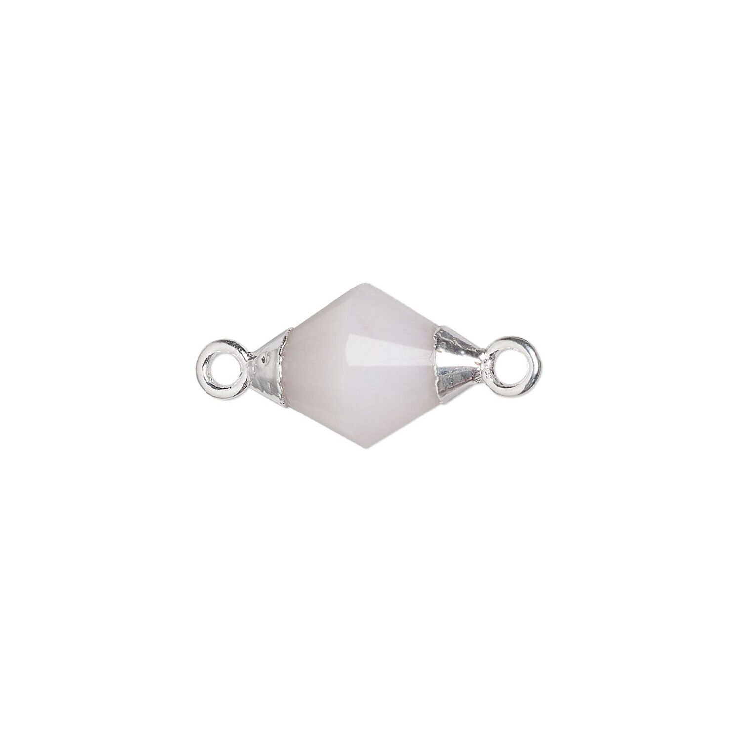 Pink opal in a faceted bicone shape is accented with silver plating and features a sterling silver loop for easily adding this sweet gemstone to jewelry designs. These beautiful, hand-cut gemstone links will add a special handcrafted touch to your jewelry. The link finding features silver-plated and sterling silver loops to easily connect to chain, wire and other beading components. Sizes, shapes and colors may vary with handcrafted items.