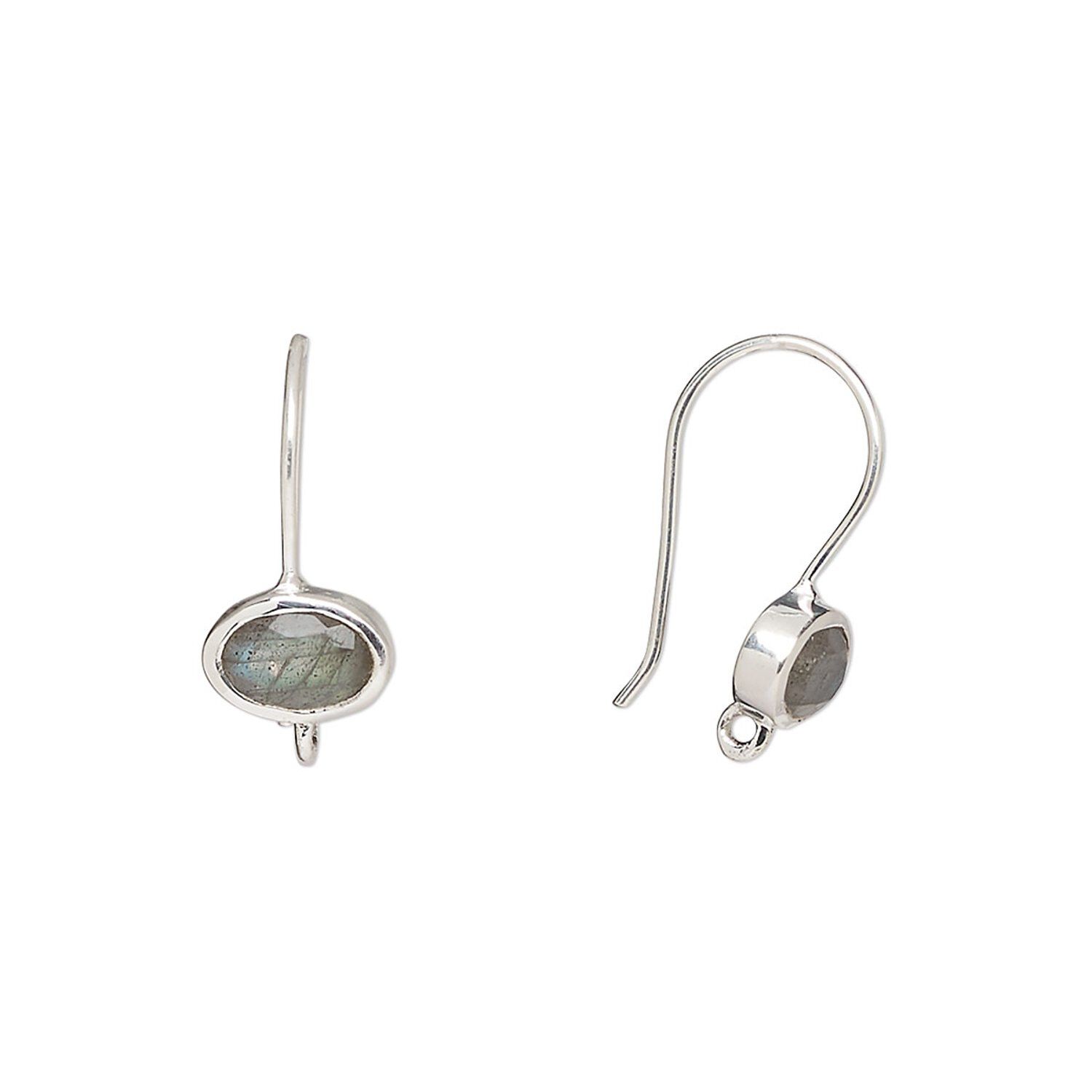 Ear wire fishhook 1pkg2 sterling silver / labradorite (natural), 15.5mm / 7.5x5.5mm oval / hand-cut / closed loop, 22 gauge 1 pair