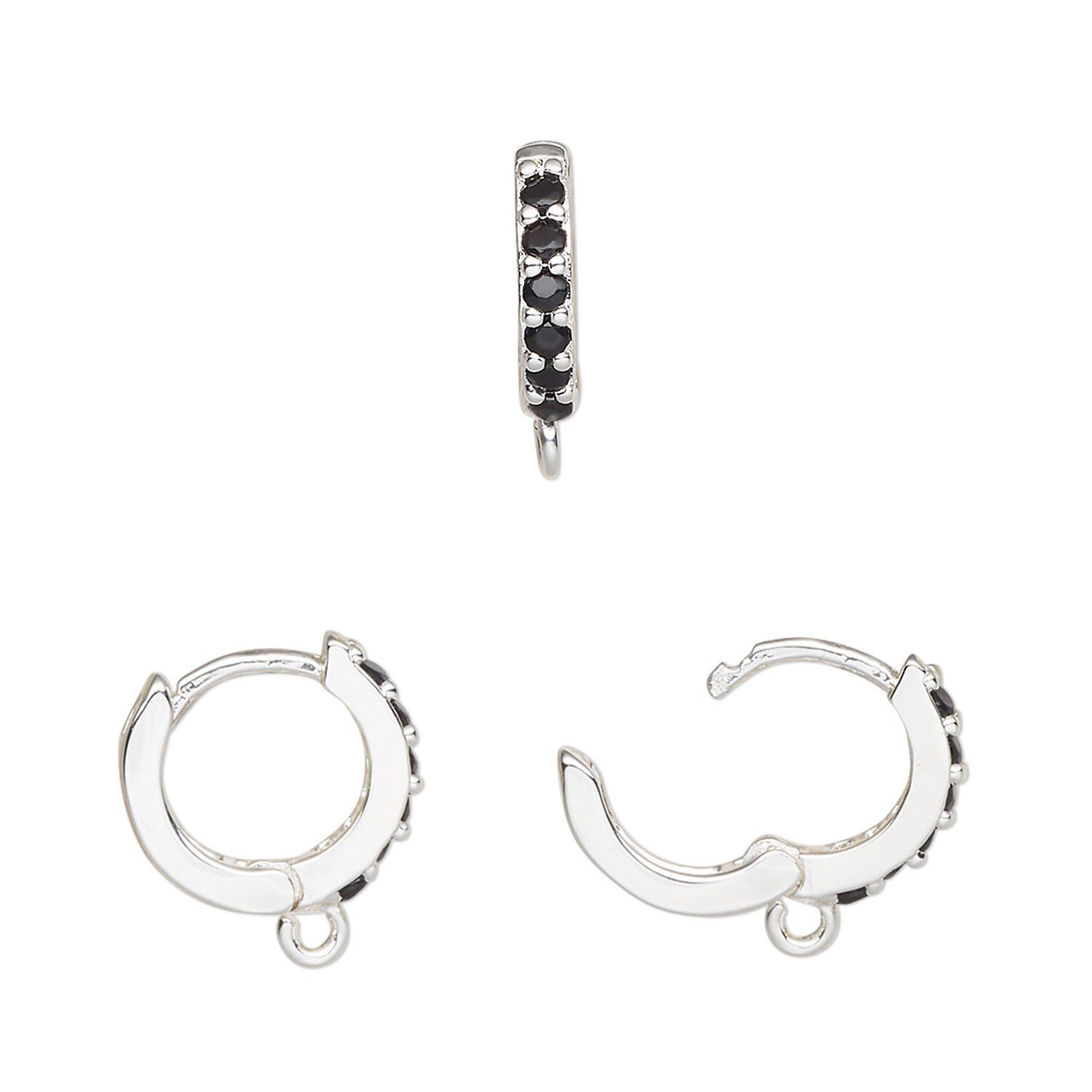 Small hoops hug the ear for unobtrusive style. Hoops are channel-set with sparkling glass stones and have a smooth-action hinge and secure latch back. Bottom loops are ideal for attaching charms, drops, dangles, chain and more.