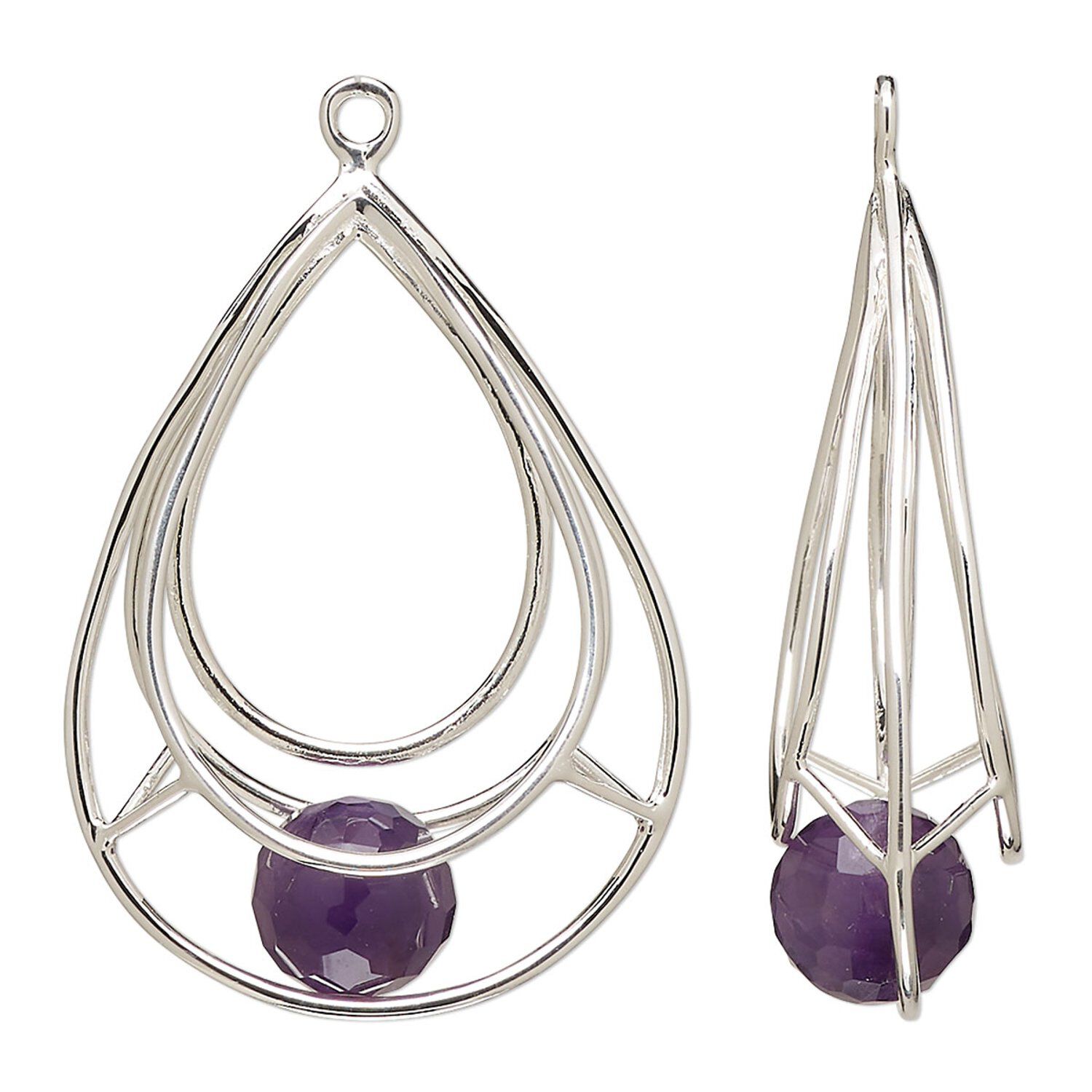 Focal, sterling silver and amethyst (natural), 32x25mm open teardrop with 9mm hand-cut faceted round, B grade, Mohs hardness 7. Sold individually.